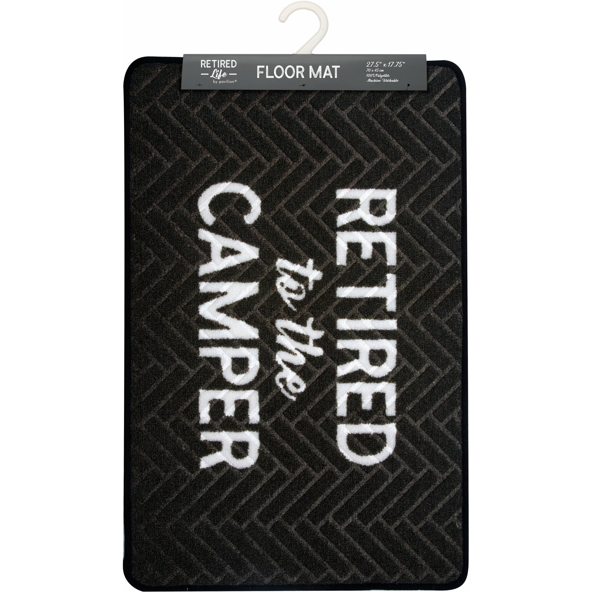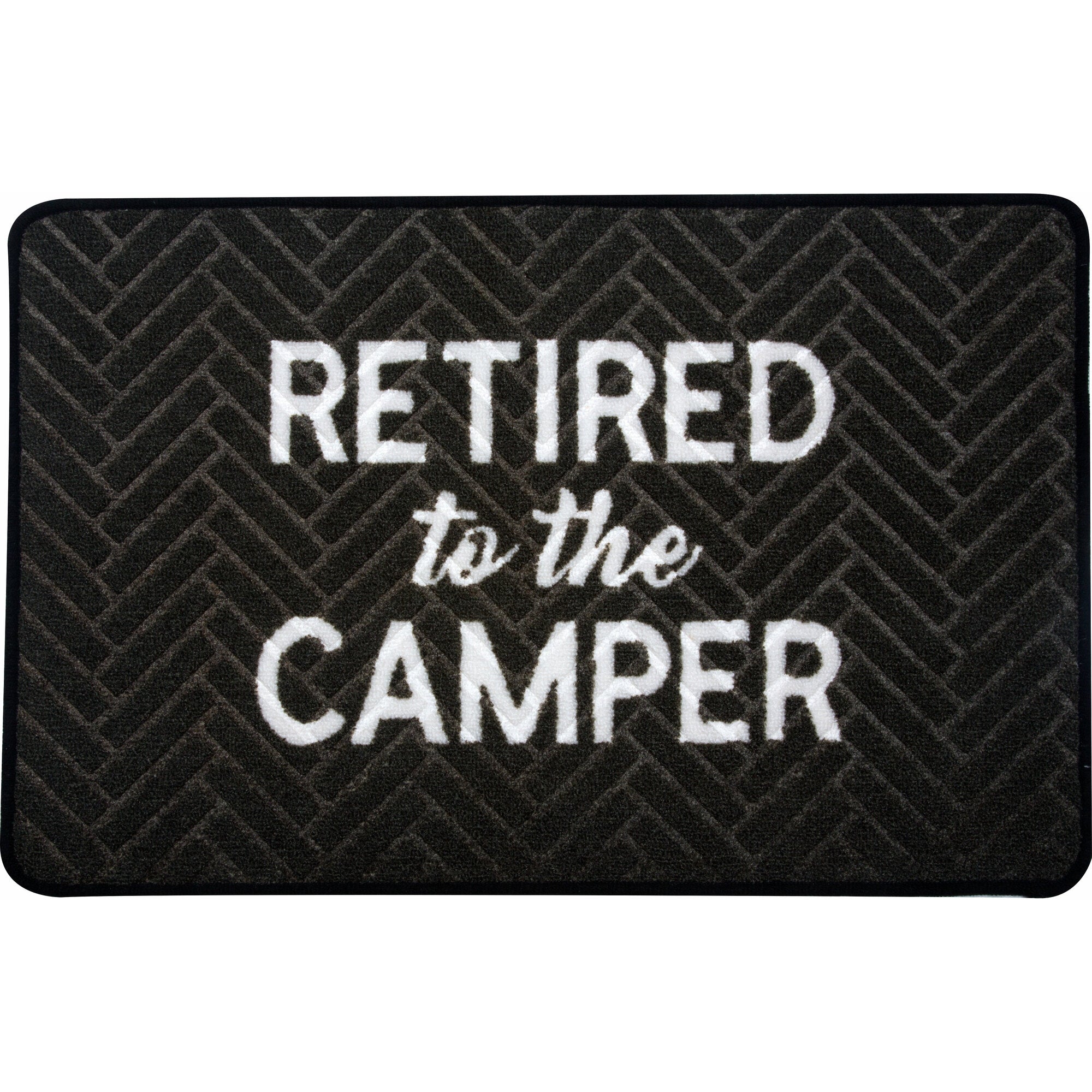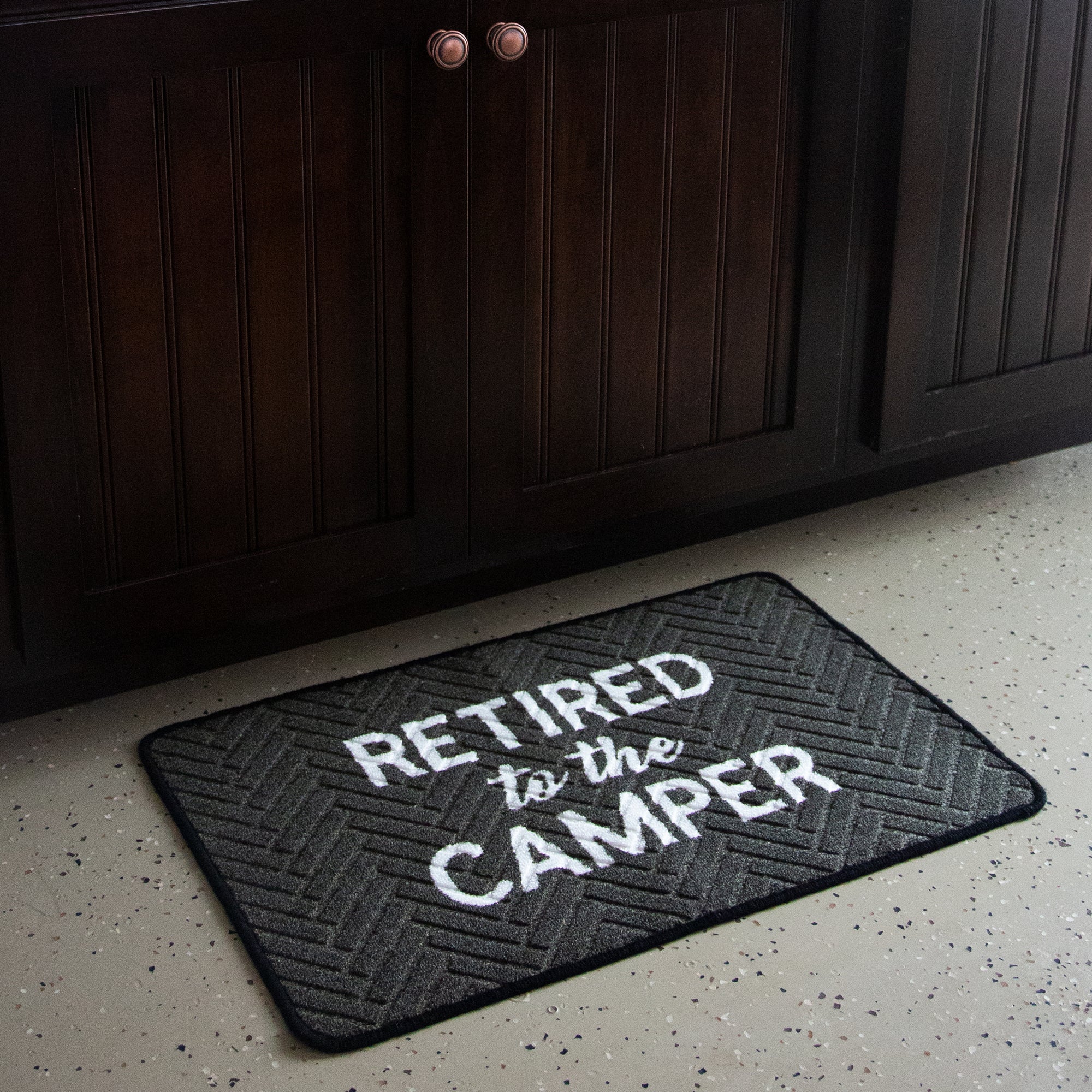 - IN-HOUSE DESIGN: "Retired To The Camper" text and accompanying chevron pattern are both sewn into the front of the doormat.