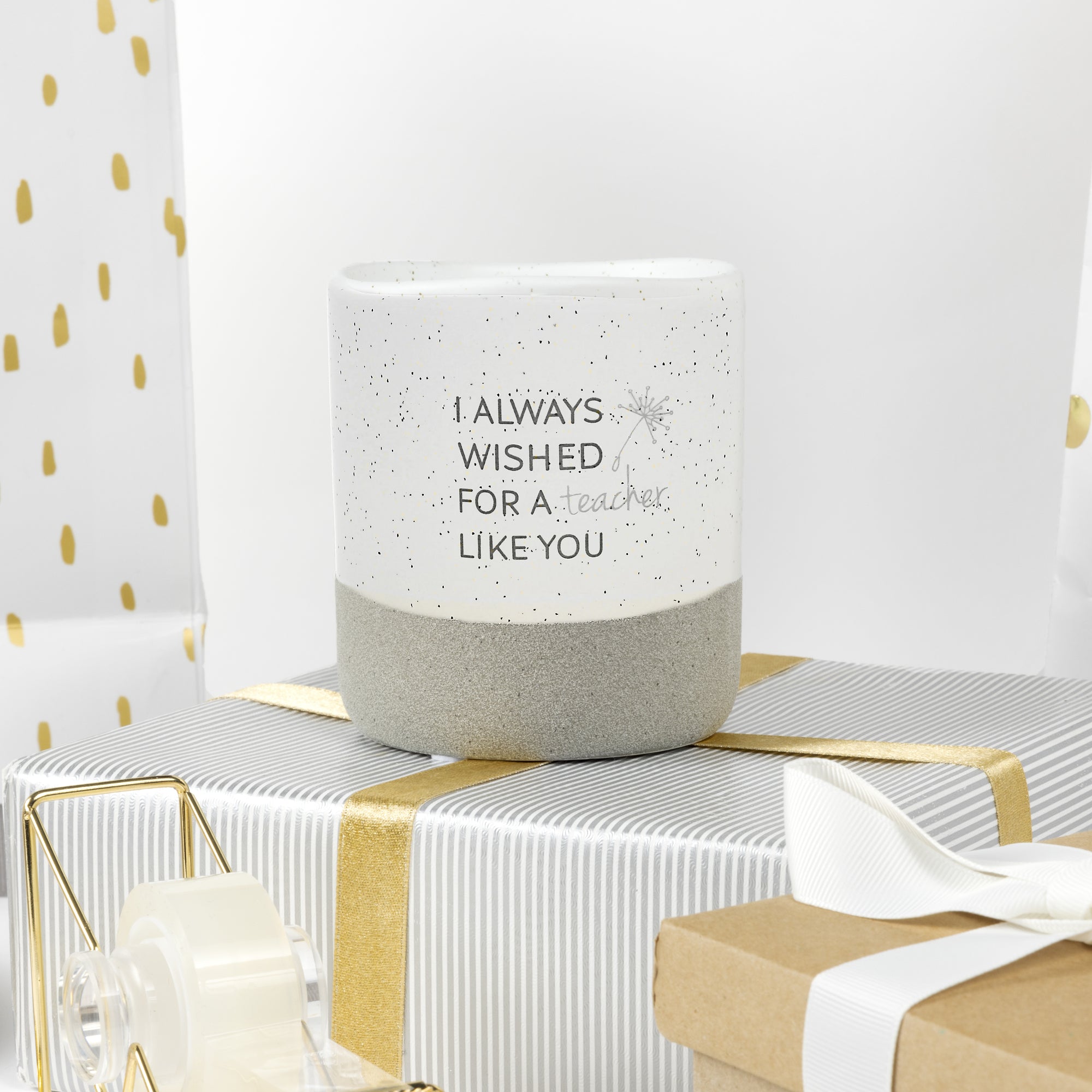 - IN-HOUSE DESIGN: The new & innovative candle offers a unique message for your loved one within the wax as time progresses. You will begin to see the black dandelion and "Amazing Teacher" sentiment after about 10 minutes. As you watch, the entire decal will appear after 50 minutes. Then, the message will hide again and reappear with each burn. The front of the candles has a simplistic "I Always Wished For A Teacher Like You" decal accompanied by a light gray dandelion.