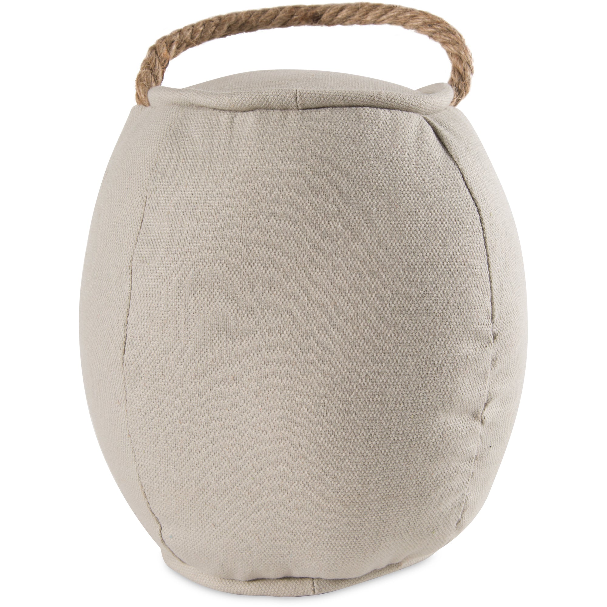 • PREMIUM QUALITY: 8" beer-barrel-shaped door stopper, packaged in a plastic polybag, is made from polyester and linen, is filled with sand and polyester, and weighs around 3 pounds.