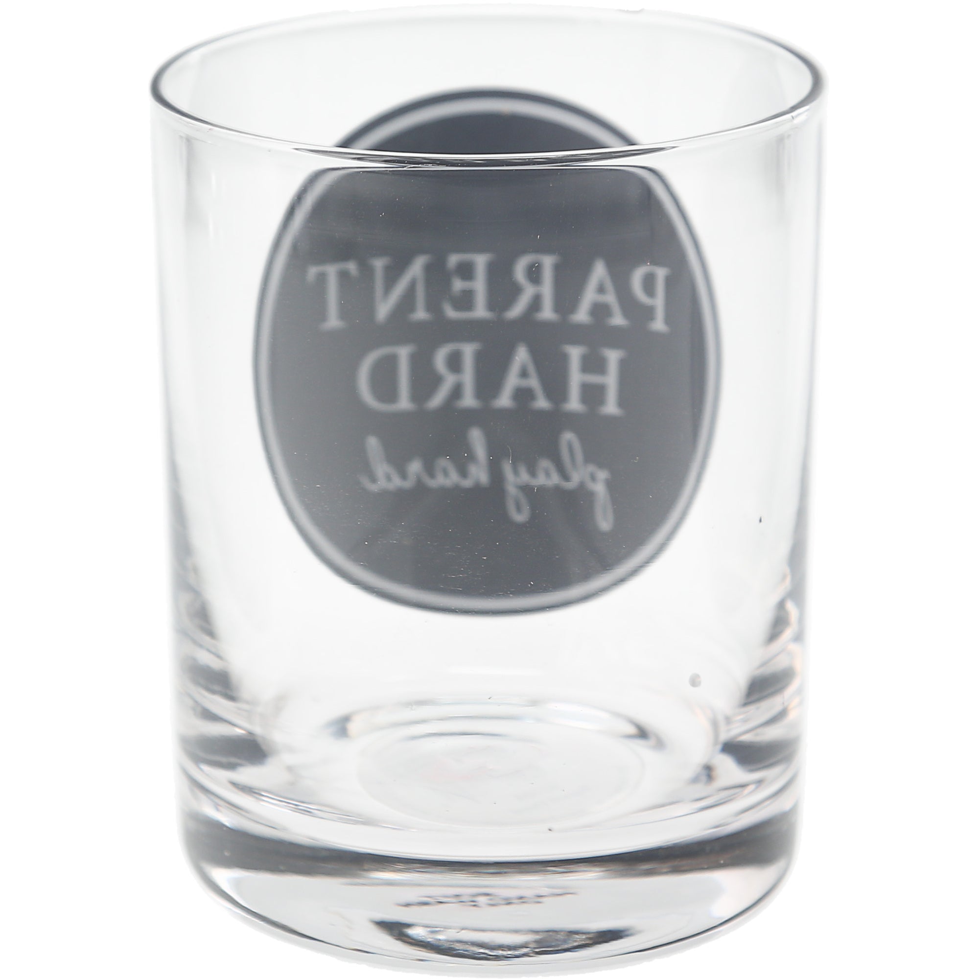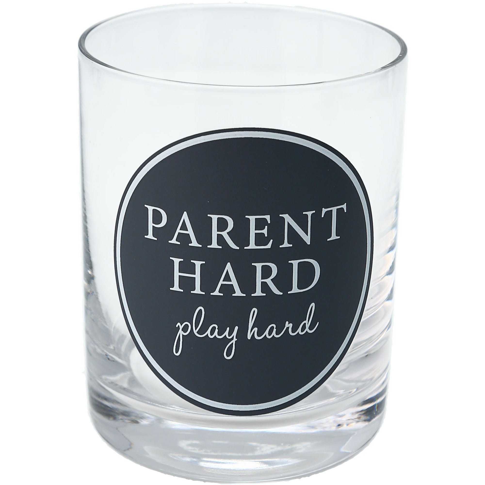 - IN-HOUSE DESIGN: Bold color block gray circle is accompanied by white "Parent Hard Play Hard" sentiment decal on the front side of the whiskey. Drinkware is prop 65 food-safe approved. Our in-house team designed our in-house team to blend in with any of your kitchen's current glassware with a refined, aesthetically pleasing look paired with humor and relatable sentiment.