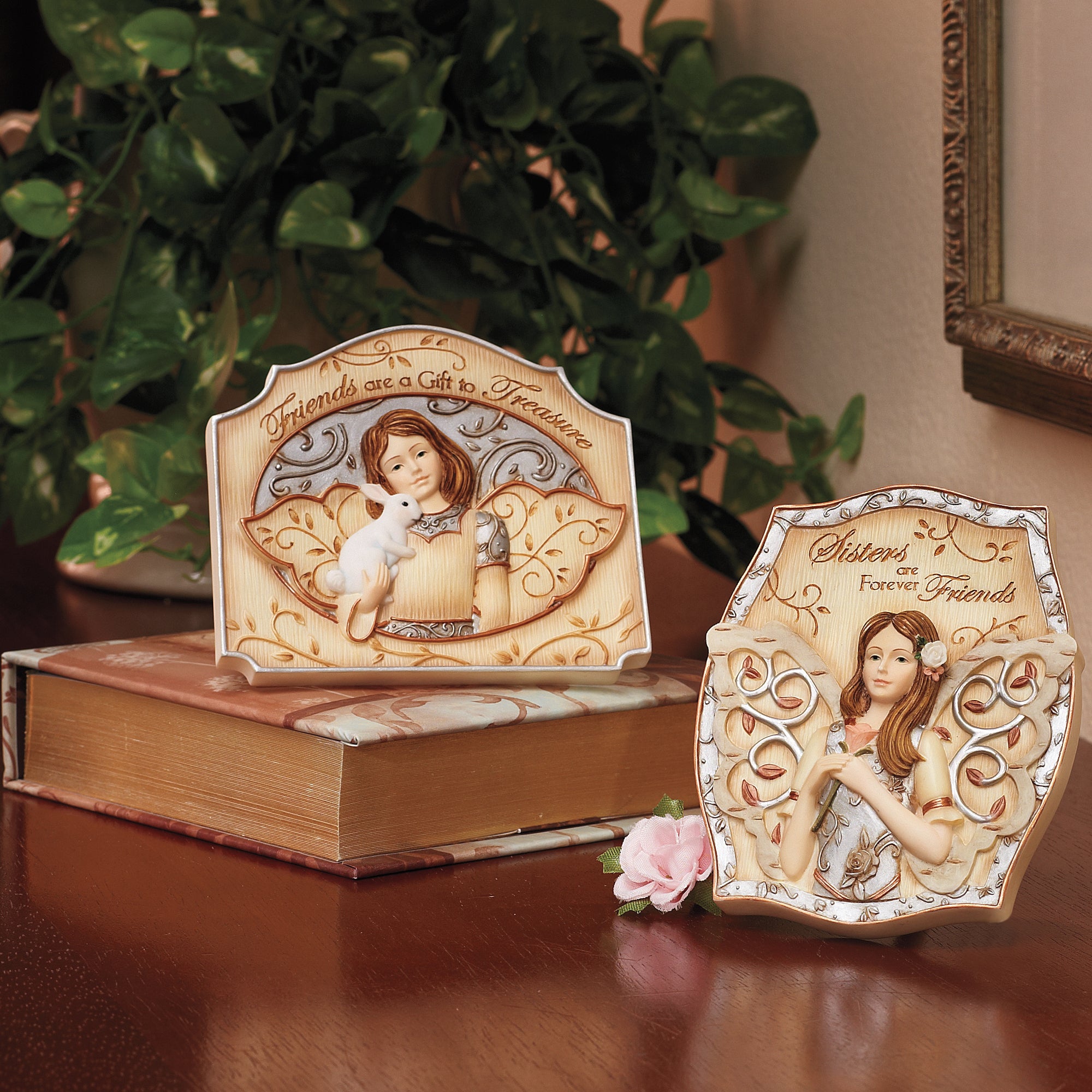- IN-HOUSE DESIGN: "Friends Are A Gift To Treasure" text and accompanying angel design are both hand-painted onto the front of the plaque.