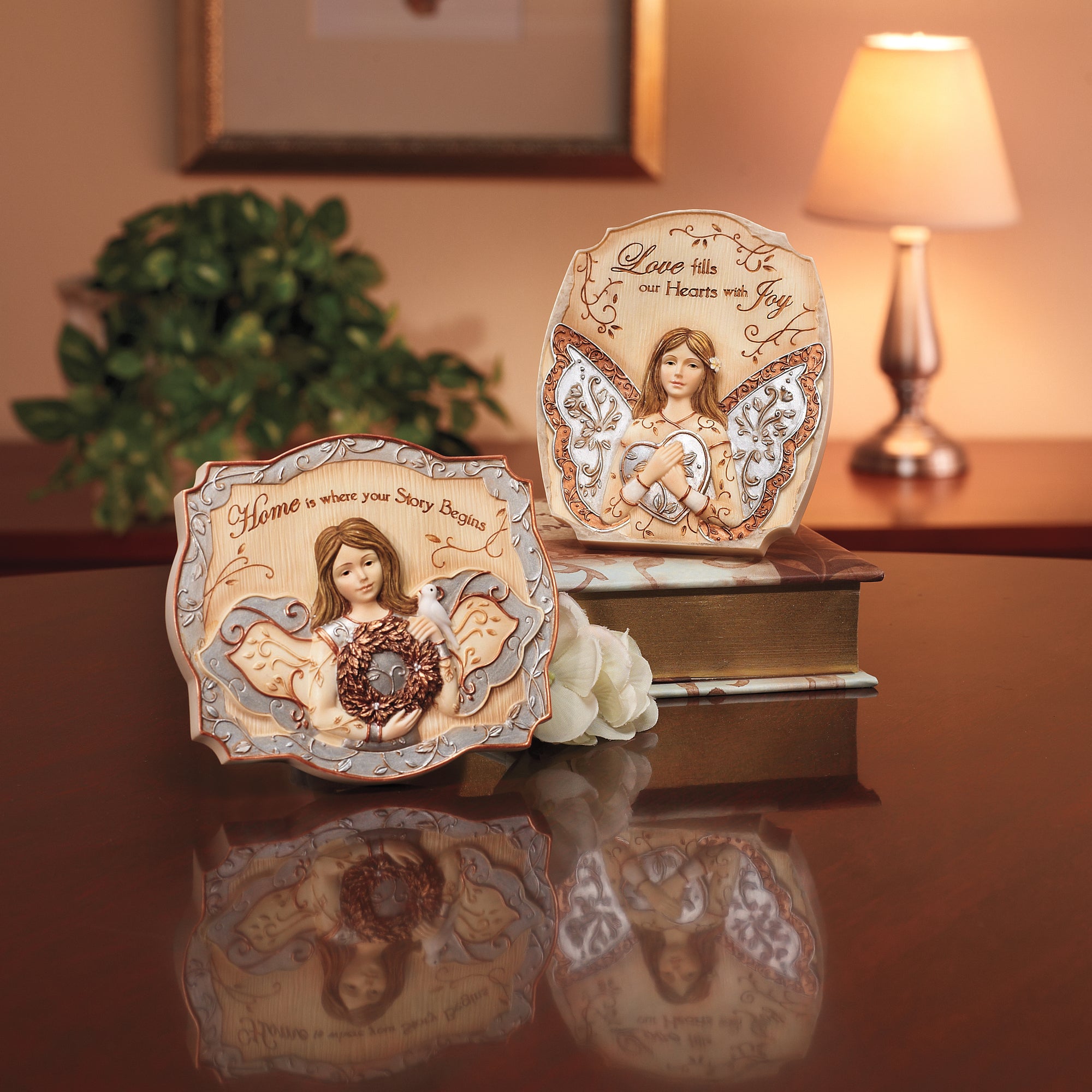 - IN-HOUSE DESIGN: "Home Is Where Your Story Begins" text and accompanying angel design are both hand-painted onto the front of the plaque.