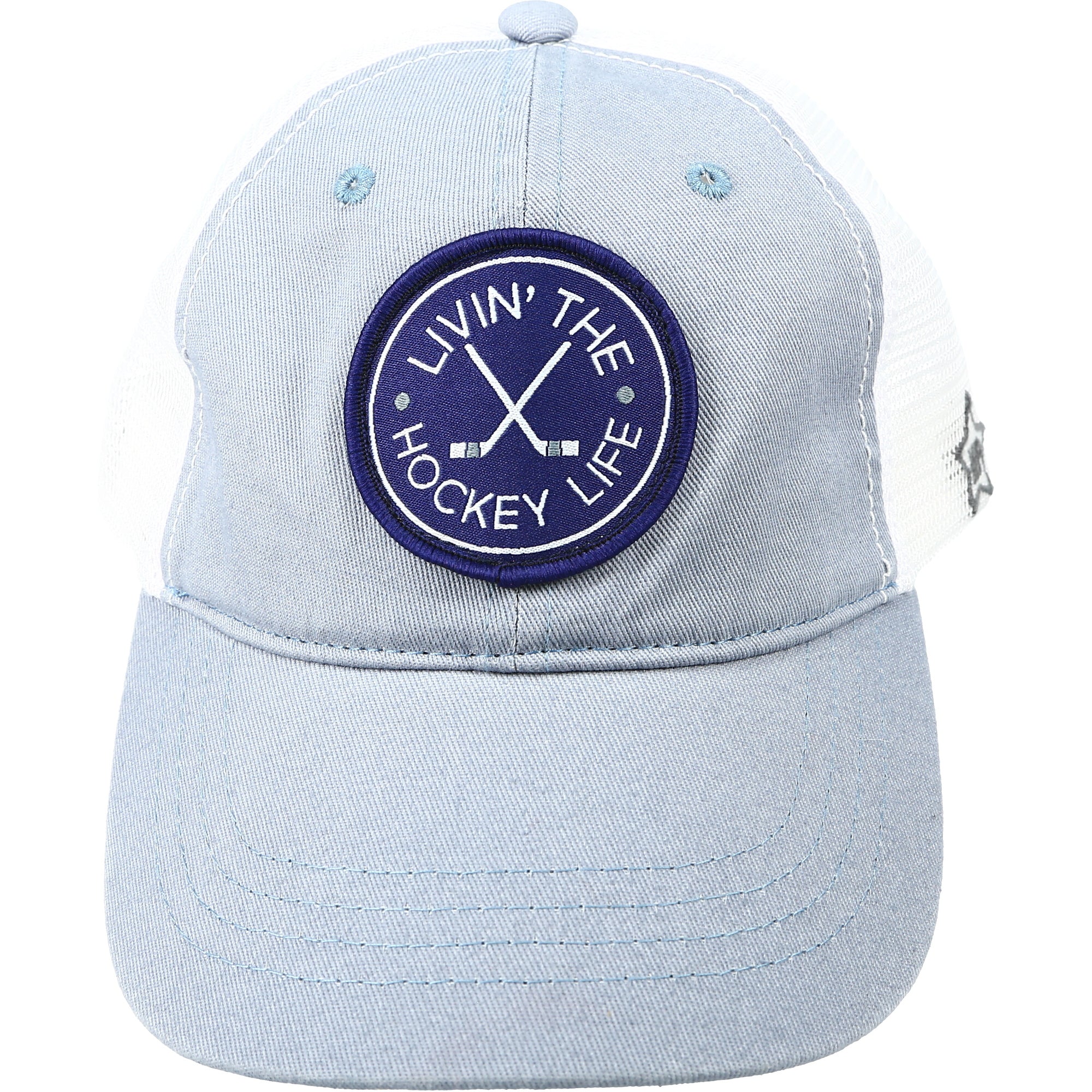 • IN-HOUSE DESIGN: "Livin' The Hockey Life" text and accompanying sticks icon are both embroidered onto a patch on the front of the hat.