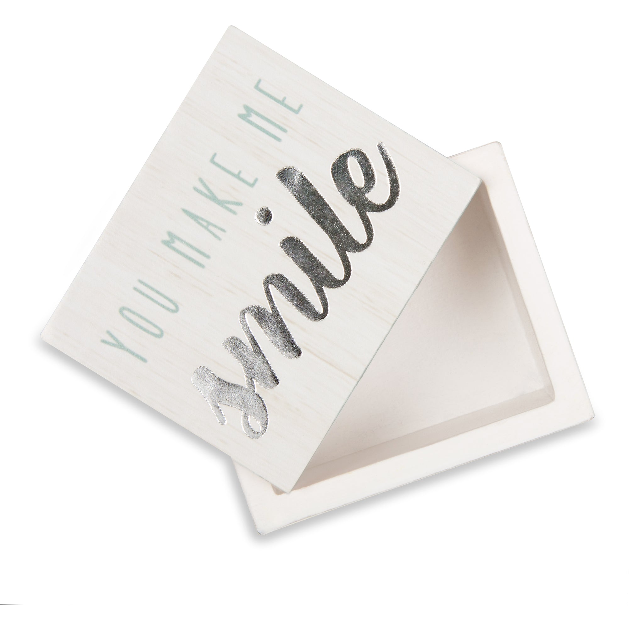 - IN-HOUSE DESIGN: "You Make Me Smile" text is printed onto the lid of the box.