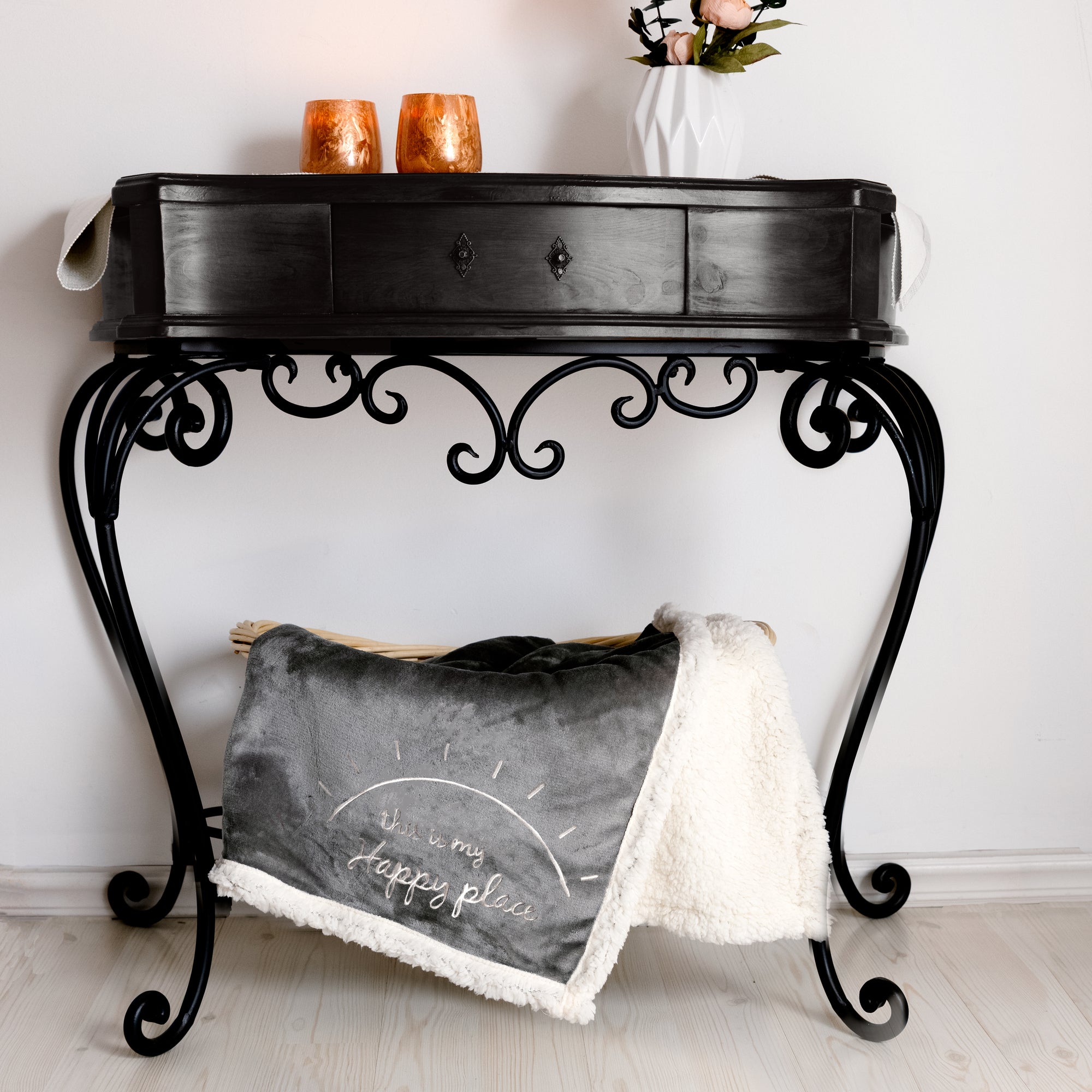 - CARE INSTRUCTIONS: Throw and socks are machine wash cold on a gentle cycle with like colors. Do not bleach or iron. Tumble dry low. The candle can be wiped clean with a damp cloth; once it has burned away, repurpose this vessel for holding small desk items or treasured keepsakes.