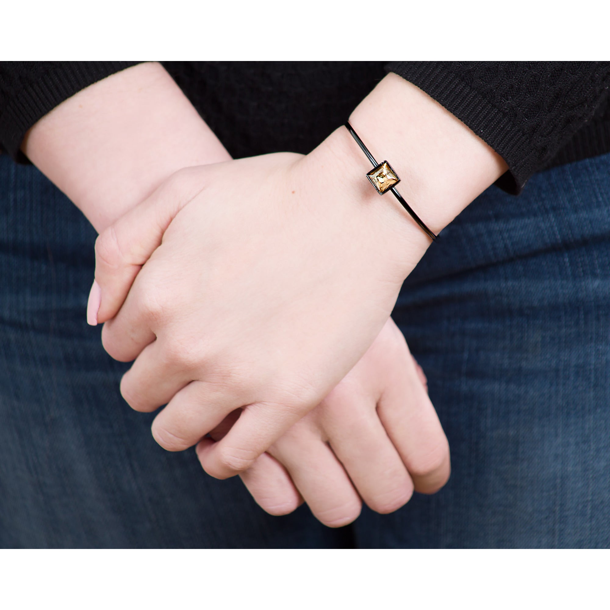- IN-HOUSE DESIGN: Bracelet contains one square-shaped crystal.