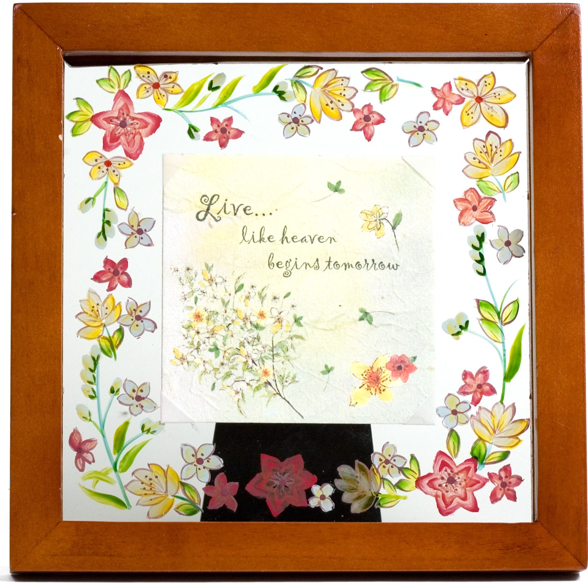 • IN-HOUSE DESIGN: "Live Like Heaven Begins Tomorrow" text and accompanying floral design are printed onto the plaque.