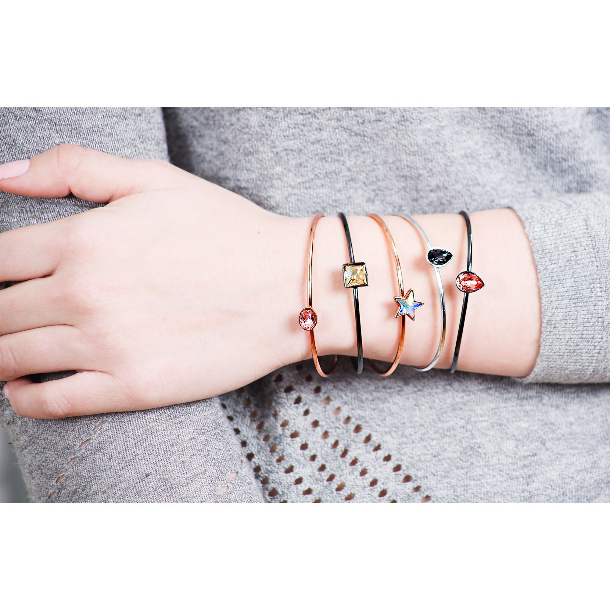 - PREMIUM QUALITY: Bangle bracelet, packaged in a velvet pouch, is made from Swarovski Elements and brass with a rhodium plating.