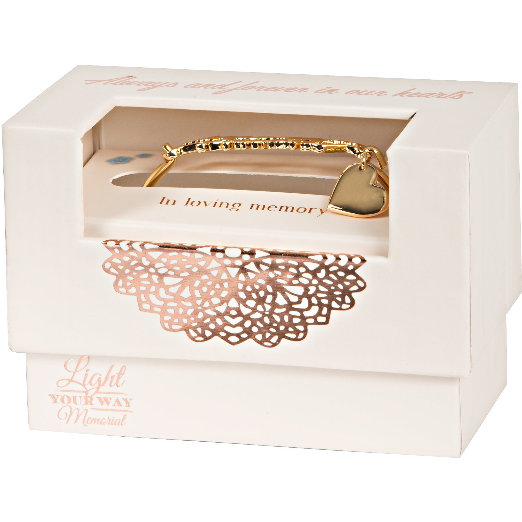 - IN-HOUSE DESIGN: "Always And Forever In Our Hearts" text is created with manipulation of metal and is accompanied by a hanging heart with engraved text reading "Mom".