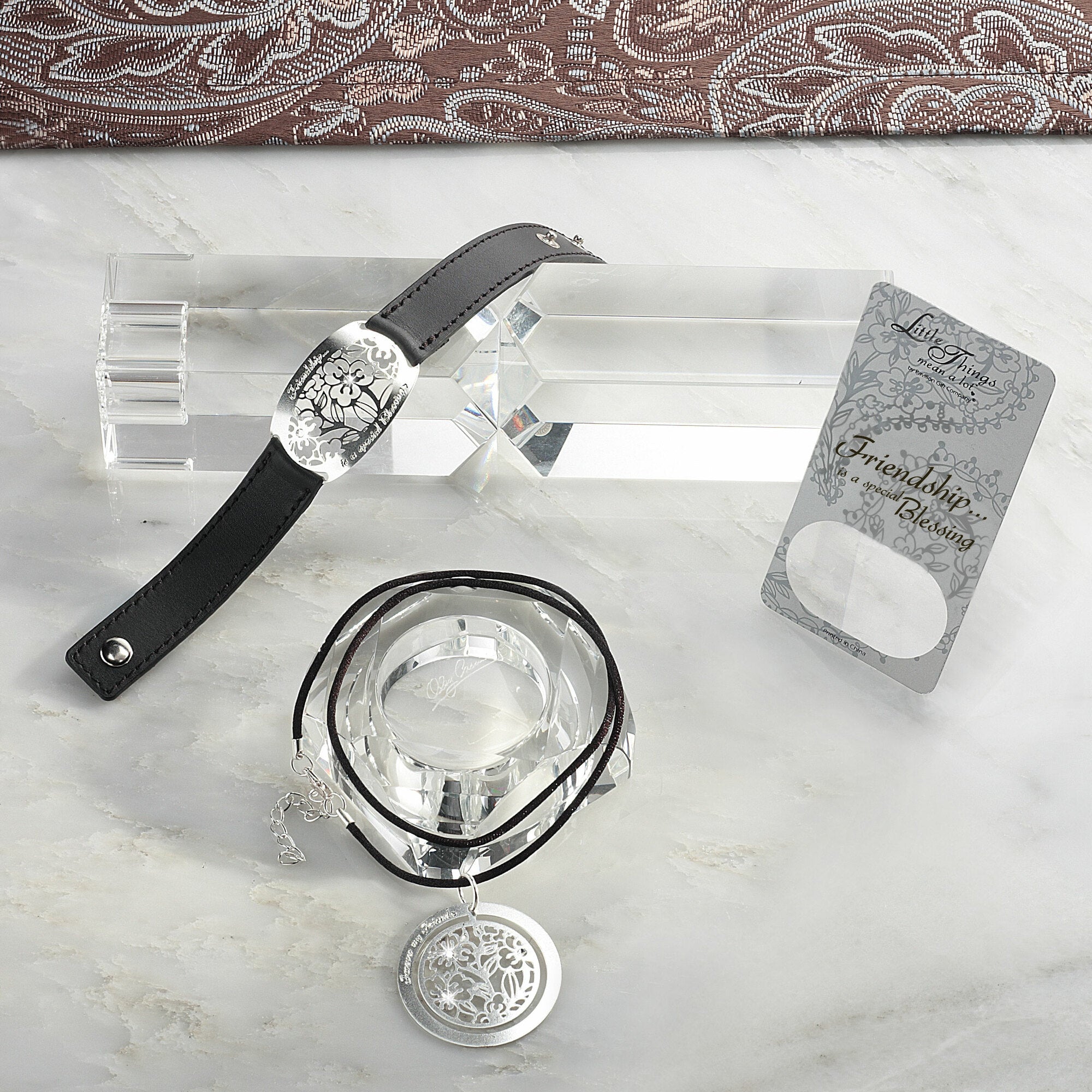 - Finely meshed silver plated adornment in middle of bracelet with inspirational inscription