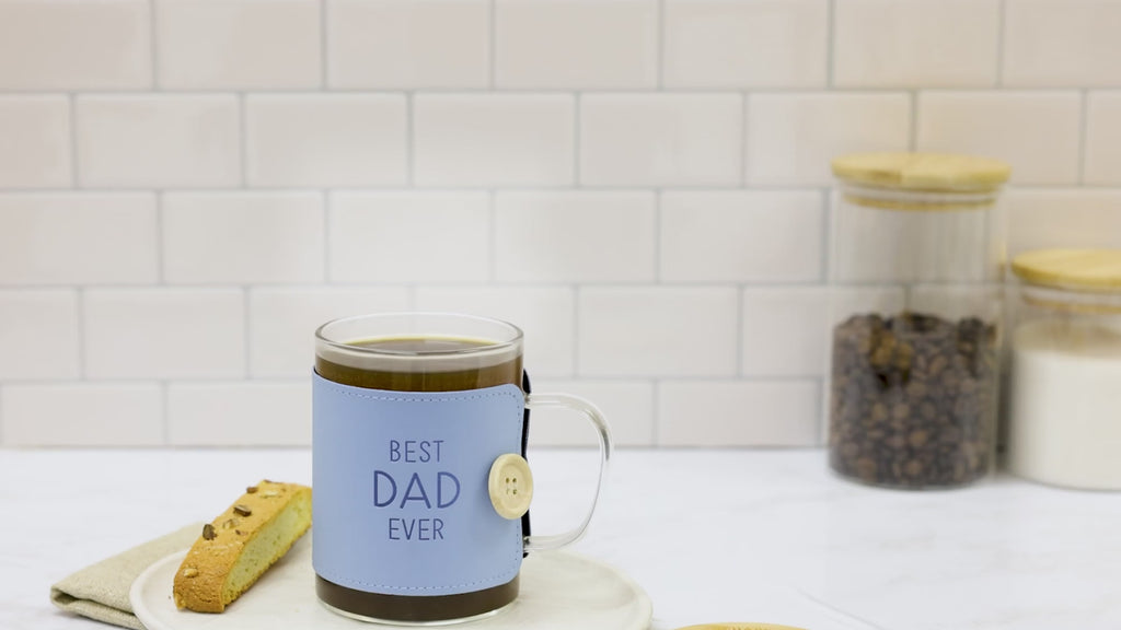 • IN-HOUSE DESIGN: Embrace the warmth of appreciation with this heartwarming drinkware adorned with a charming blue wrap. The wrap bears the loving sentiment "Best Dad Ever," exquisitely engraved, complemented by delicate blue stitching, a tan button, and a white elastic closure for a touch of elegance. Meanwhile, the coaster cap crafted from natural wood grain showcases a rounded "Share Kindness" text encircled by a circular line, radiating positivity with every sip.