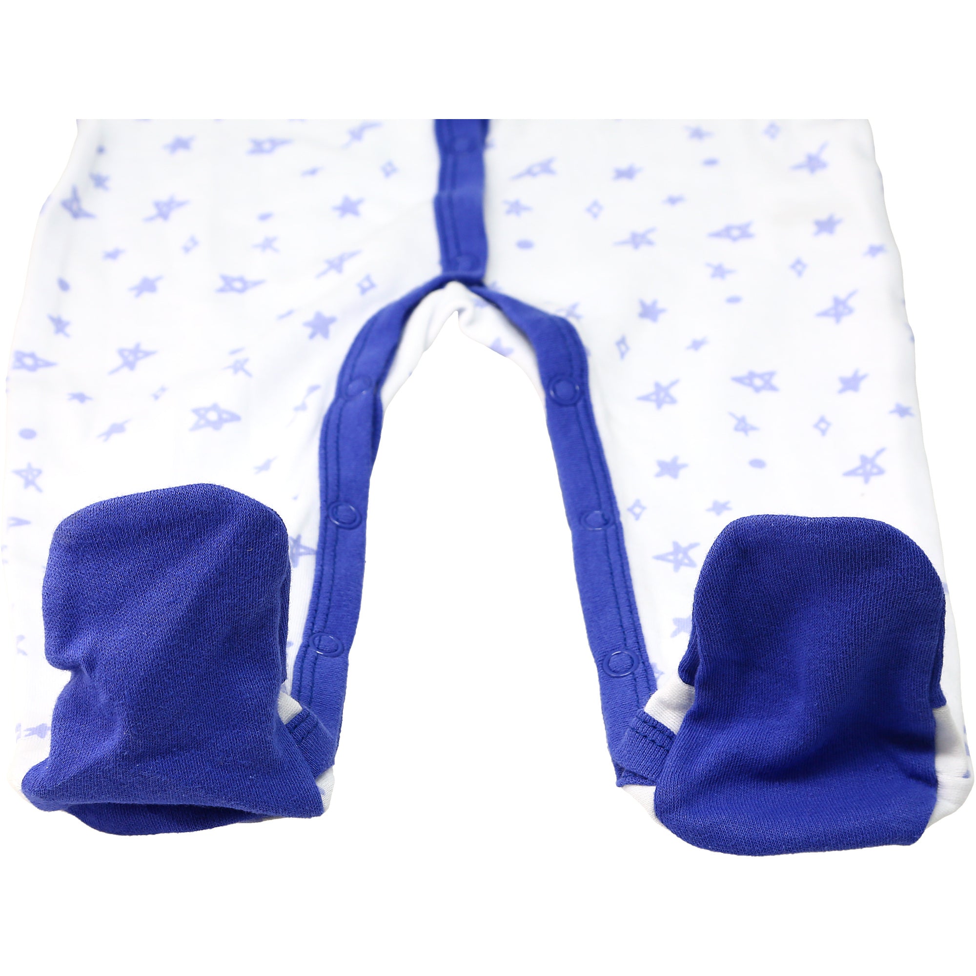 - PREMIUM QUALITY: 0-6 month, long-sleeved bodysuit sleeper is made from 100% cotton with close-toed built-in sock feet and fold-over hand mitts to protect your little one from scratching their face/eyes. 13 metal snap front closure. Also available in a 6-12 month size without the fold-over mitts. Packaged in a plastic polybag with hangtag and plastic hanger.