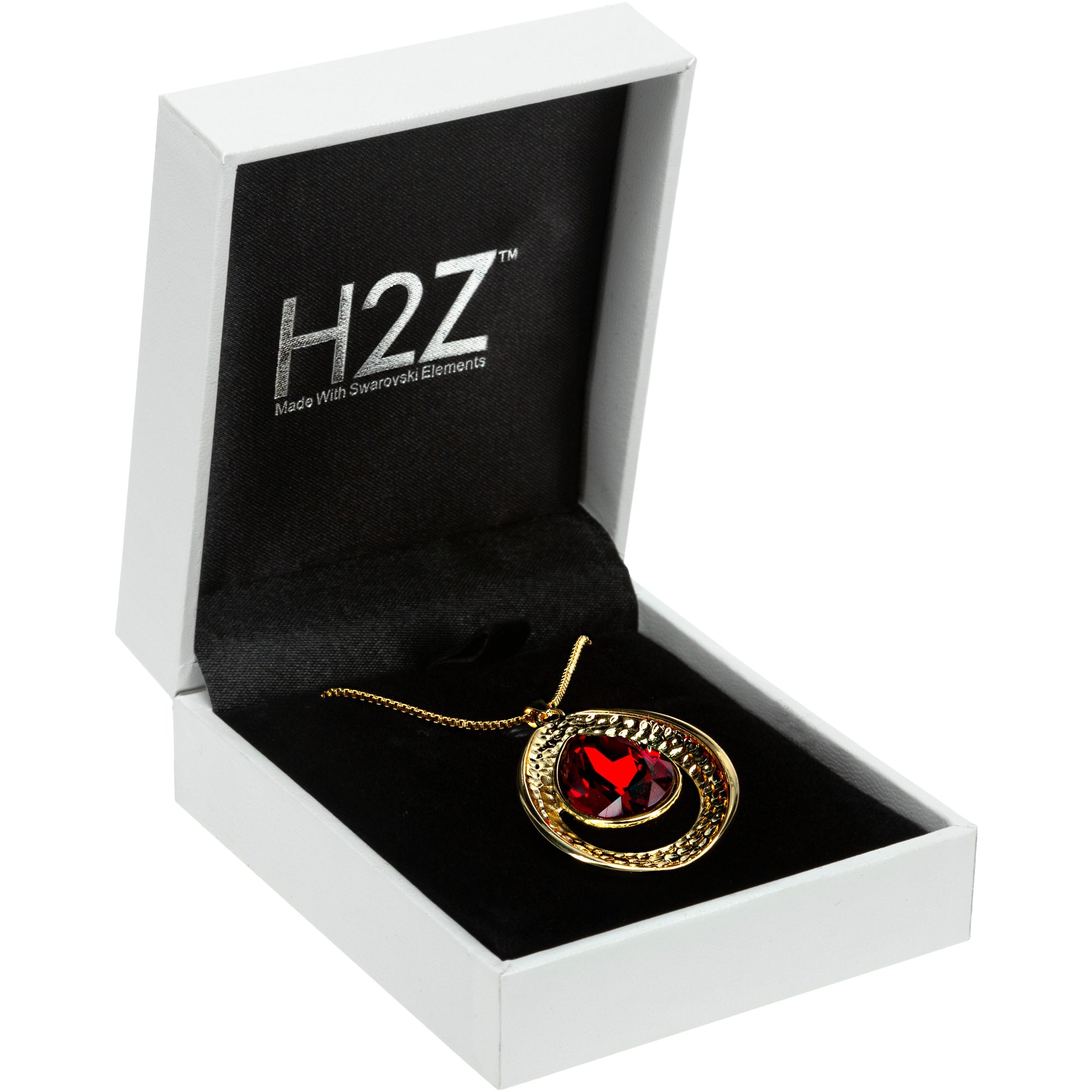 - IN-HOUSE DESIGN: Necklace features a hammered look teardrop-shaped pendant with a teardrop red siam crystal.
