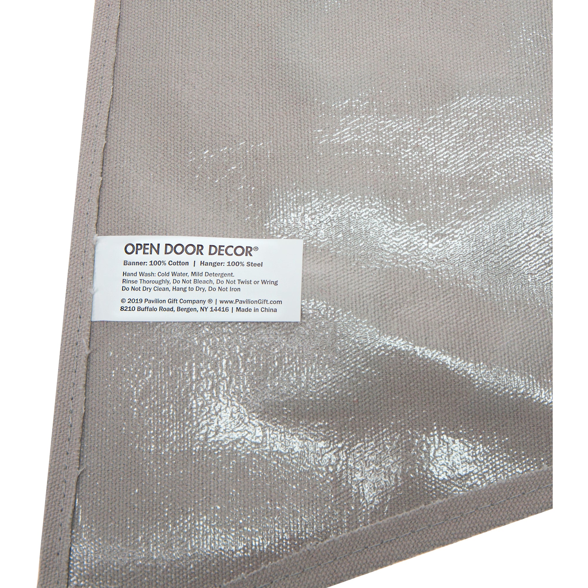 - CARE INSTRUCTIONS: Wipe clean with a damp cloth, if necessary. Metal hanger can be removed from banner.