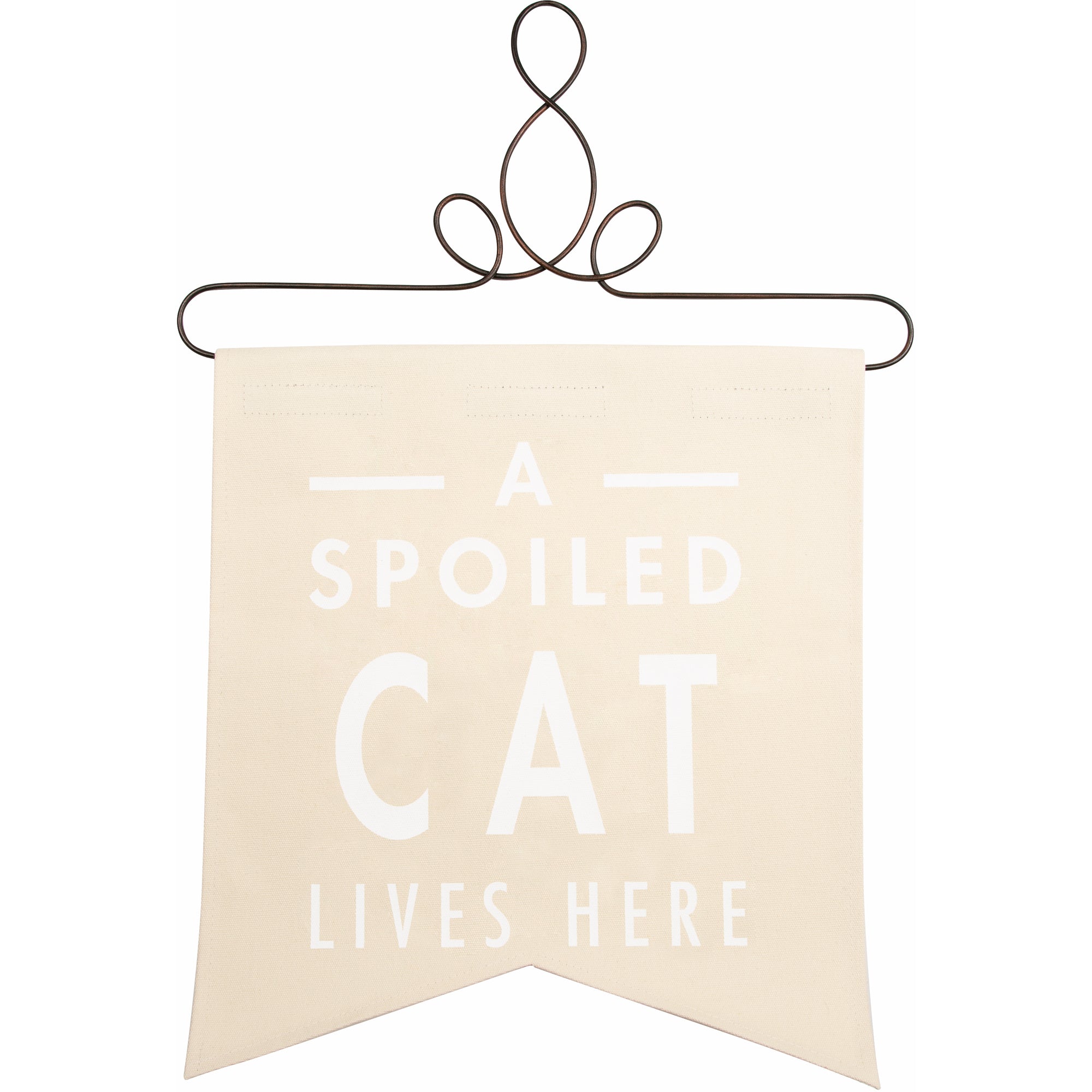 • IN-HOUSE DESIGN: "A Spoiled Cat Lives Here" text is printed onto the front of the banner.