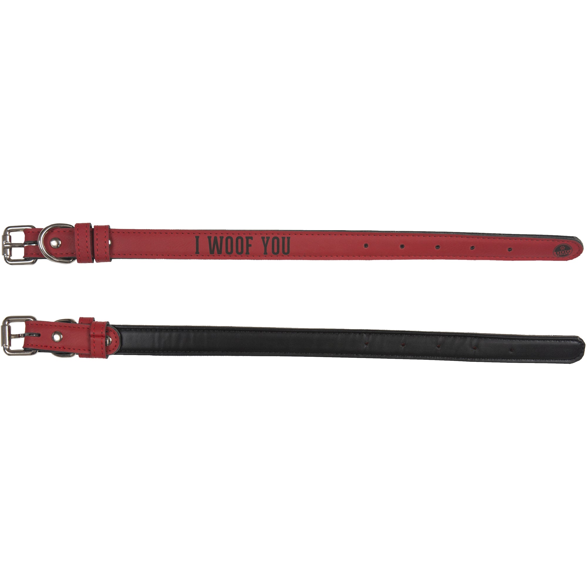 • IN-HOUSE DESIGN: "I Woof You" text is engraved onto the dog collar.
