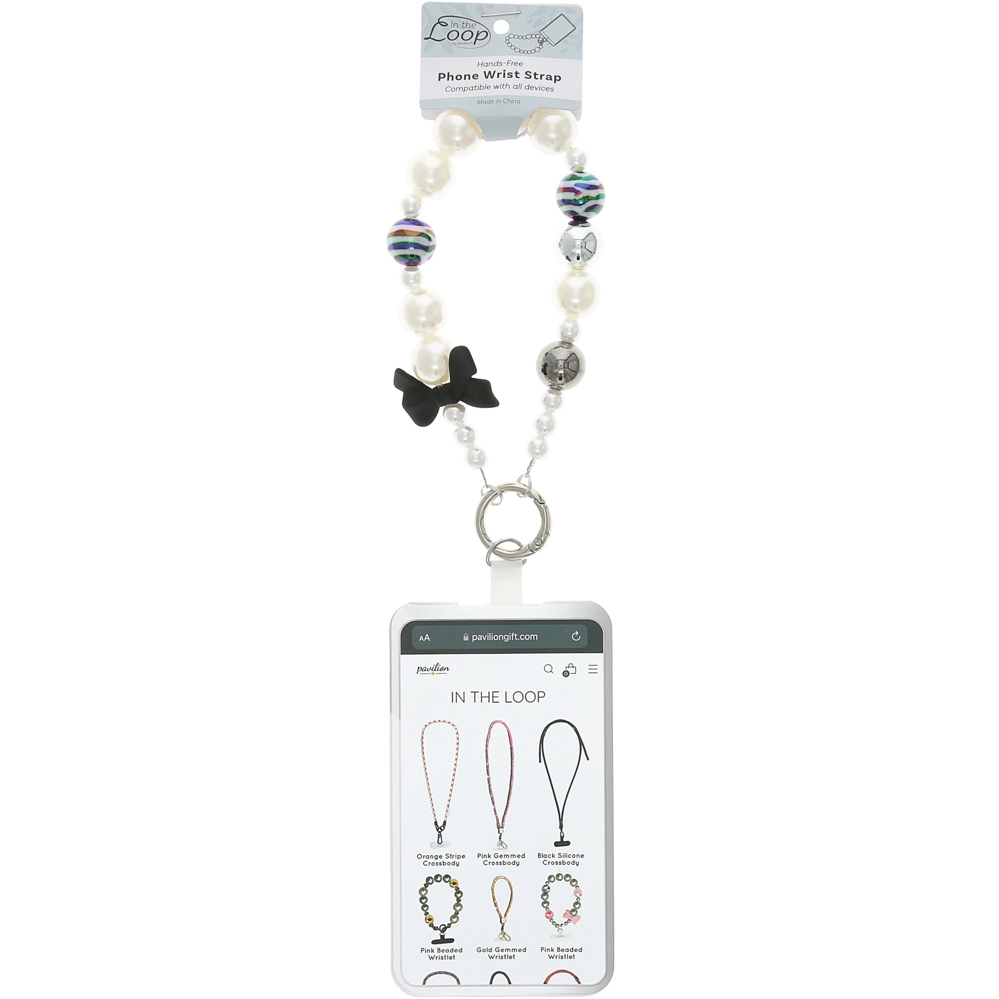 • IN-HOUSE DESIGN: Features a chic black bow accent paired with bold black and brown striped beads, offering a sleek, modern aesthetic. Easily attaches to your phone with the branded tab.