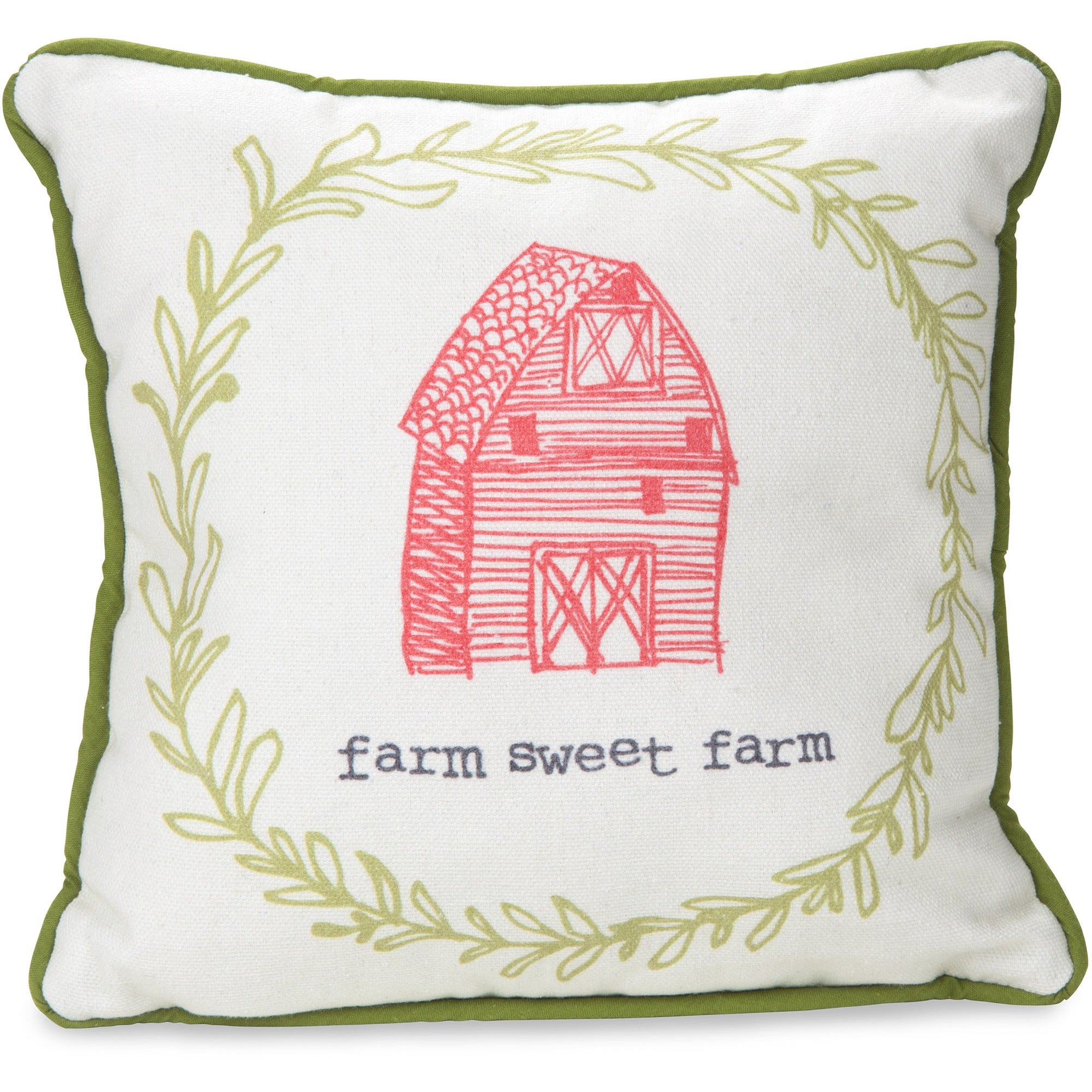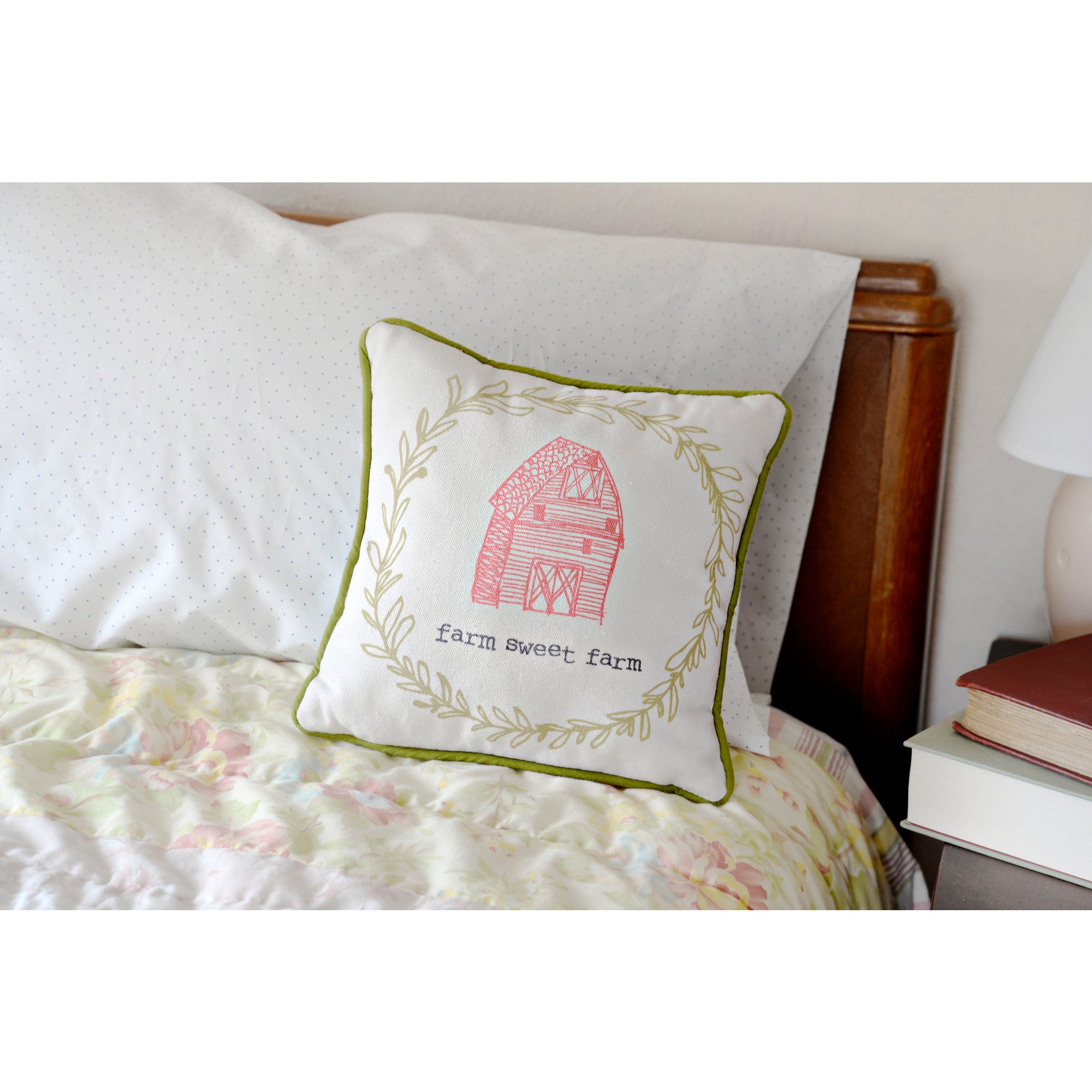 - IN-HOUSE DESIGN: Designed by Amylee Weeks, "Farm Sweet Farm" text and accompanying barn image are both printed onto the front of the pillow, while the back has a printed floral pattern.
