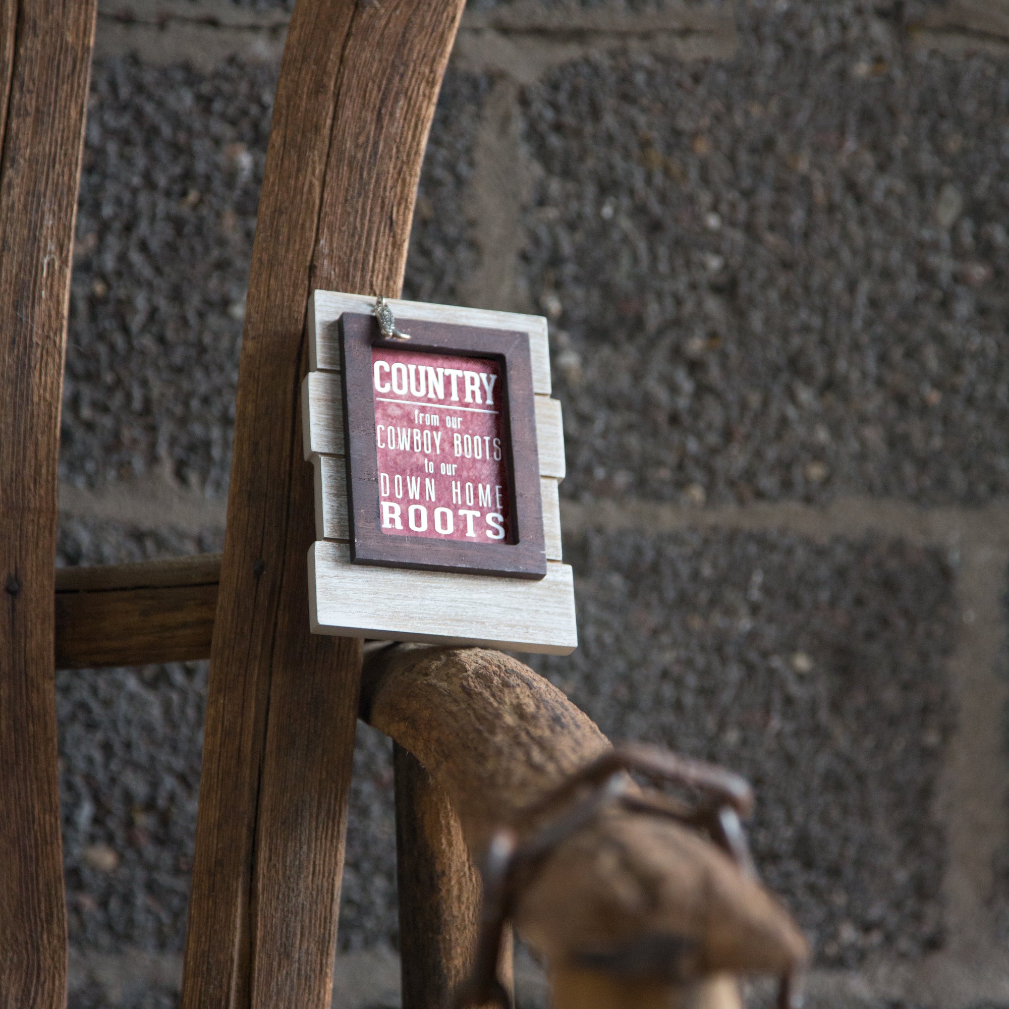 - PREMIUM QUALITY: This 5.25”self-standing or hanging plaque is crafted from high-quality MDF wood, designed to provide a sturdy and stylish accent piece for any country-themed space. The wooden sign is carefully packaged in a protective box and comes equipped with a wire hanger for easy mounting. The barnwood-inspired texture and deep red background give it a warm feel, making it an ideal piece of Western-inspired decor. A metal cowboy boot charm dangles from the top, adding a rugged touch to this uniquely designed sign.