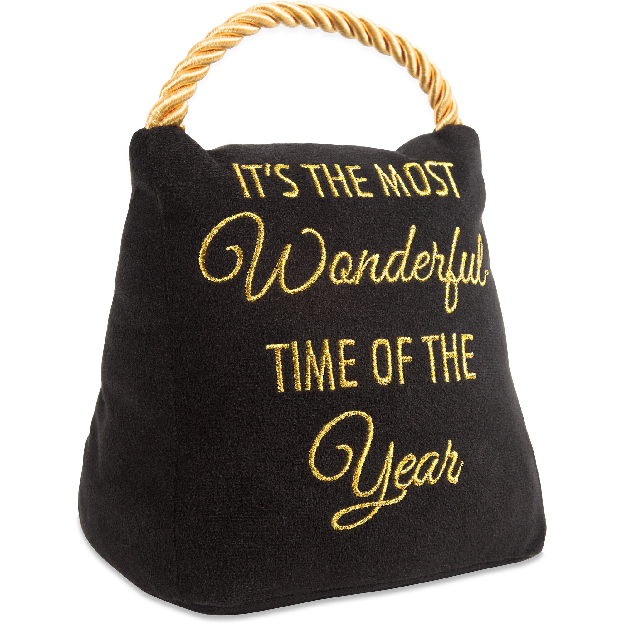 - IN-HOUSE DESIGN: "It's The Most Wonderful Time Of The Year" text is embroidered onto the front of the door stopper.