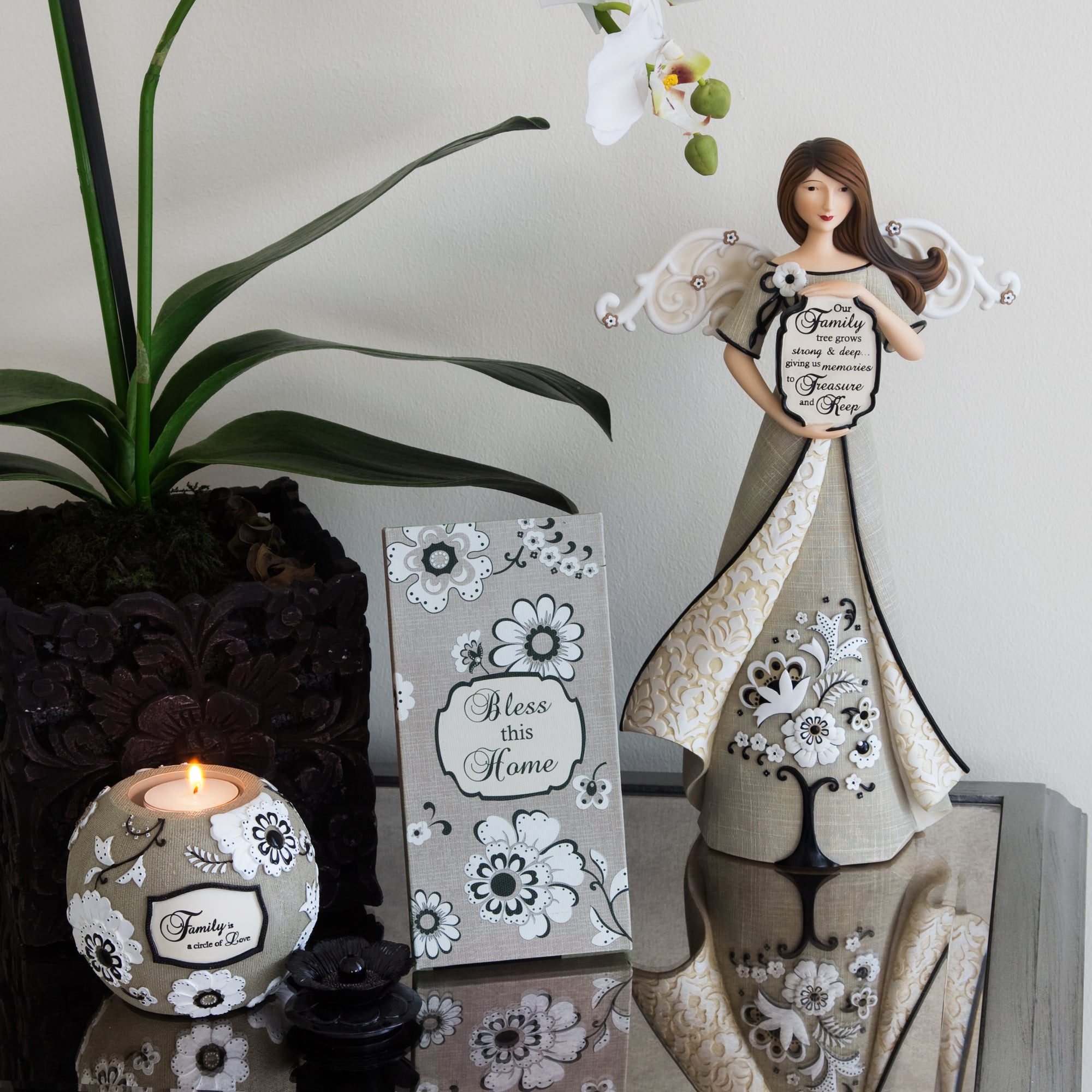- IN-HOUSE DESIGN: "Bless This Home" text and accompanying floral design are both printed onto the front of the plaque.