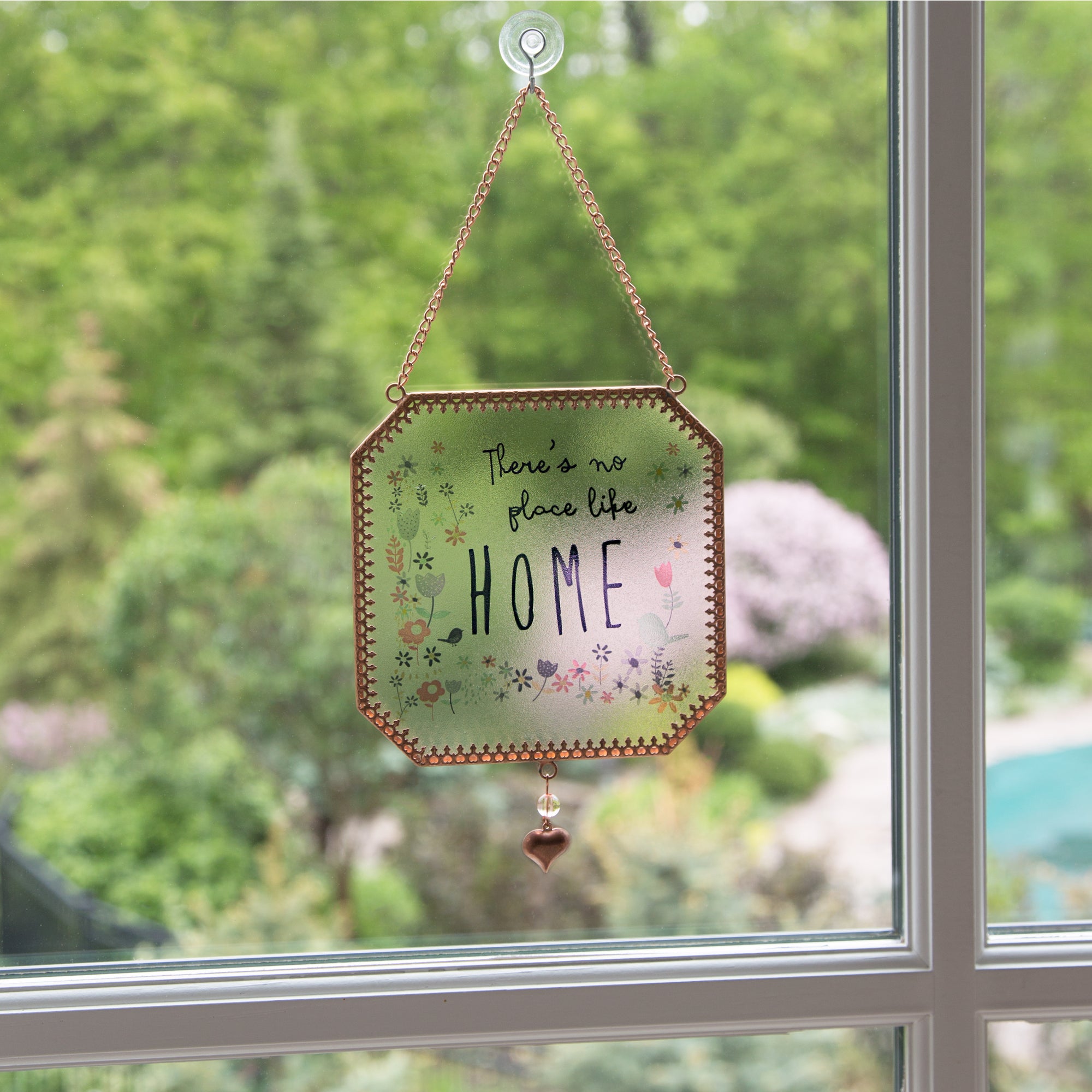 - IN-HOUSE DESIGN: Designed by Amylee Weeks, "There's No Place Like Home" and accompanying floral design are printed onto the sun catcher.