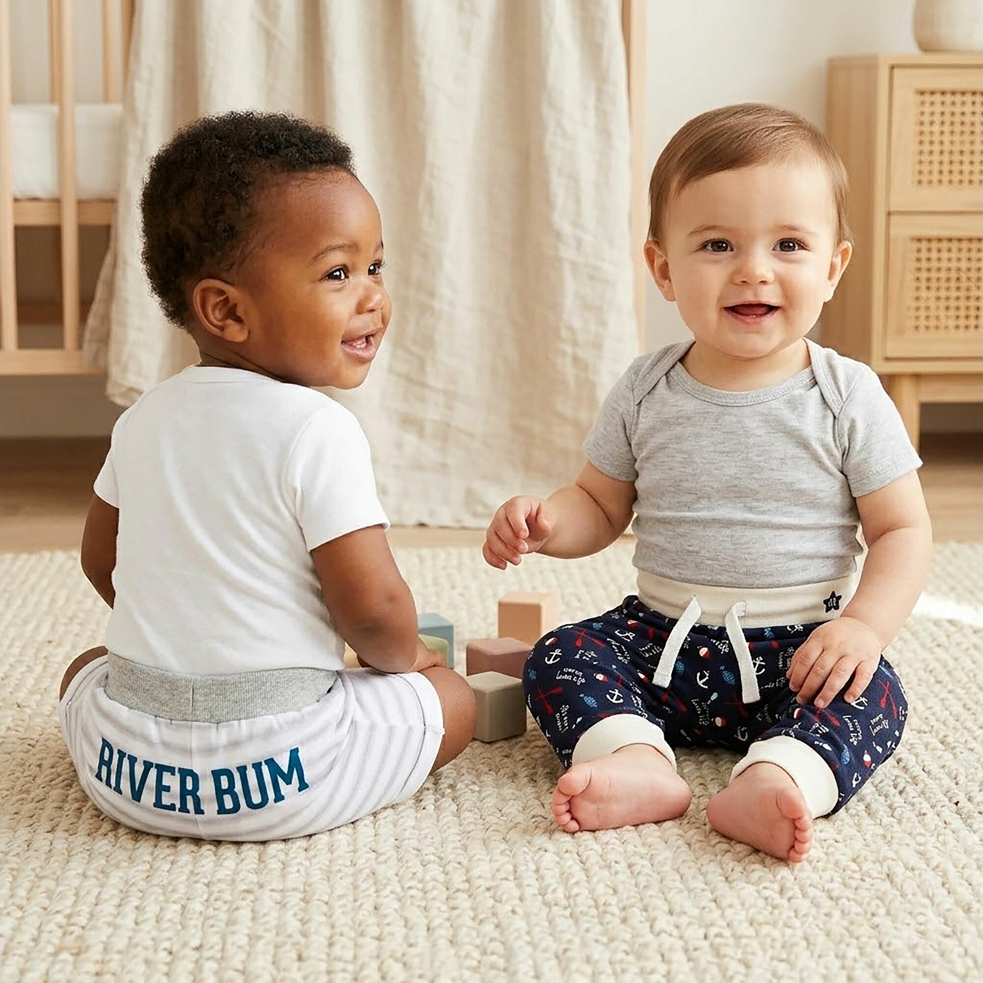 - IN-HOUSE DESIGN: "River Bum" text is printed onto the rear of the shorts, while the We Baby logo and wave icon are embroidered onto the front.