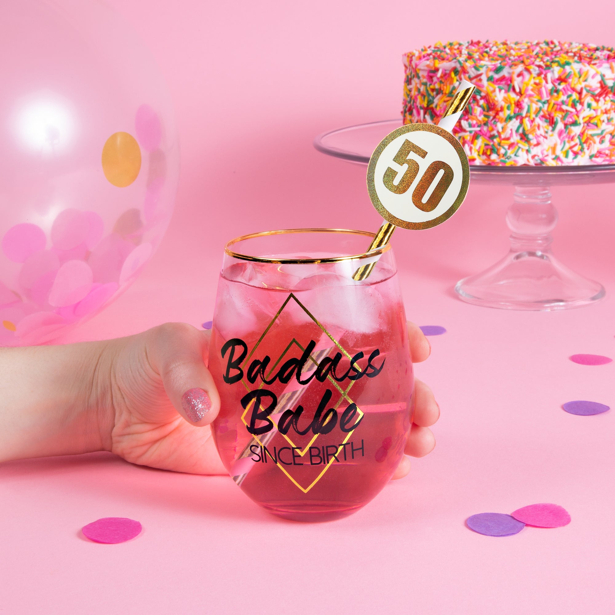 - IN-HOUSE DESIGN: "50" numbers are heat-stamped onto the circular attachments while the straw itself features a metallic stripe pattern.