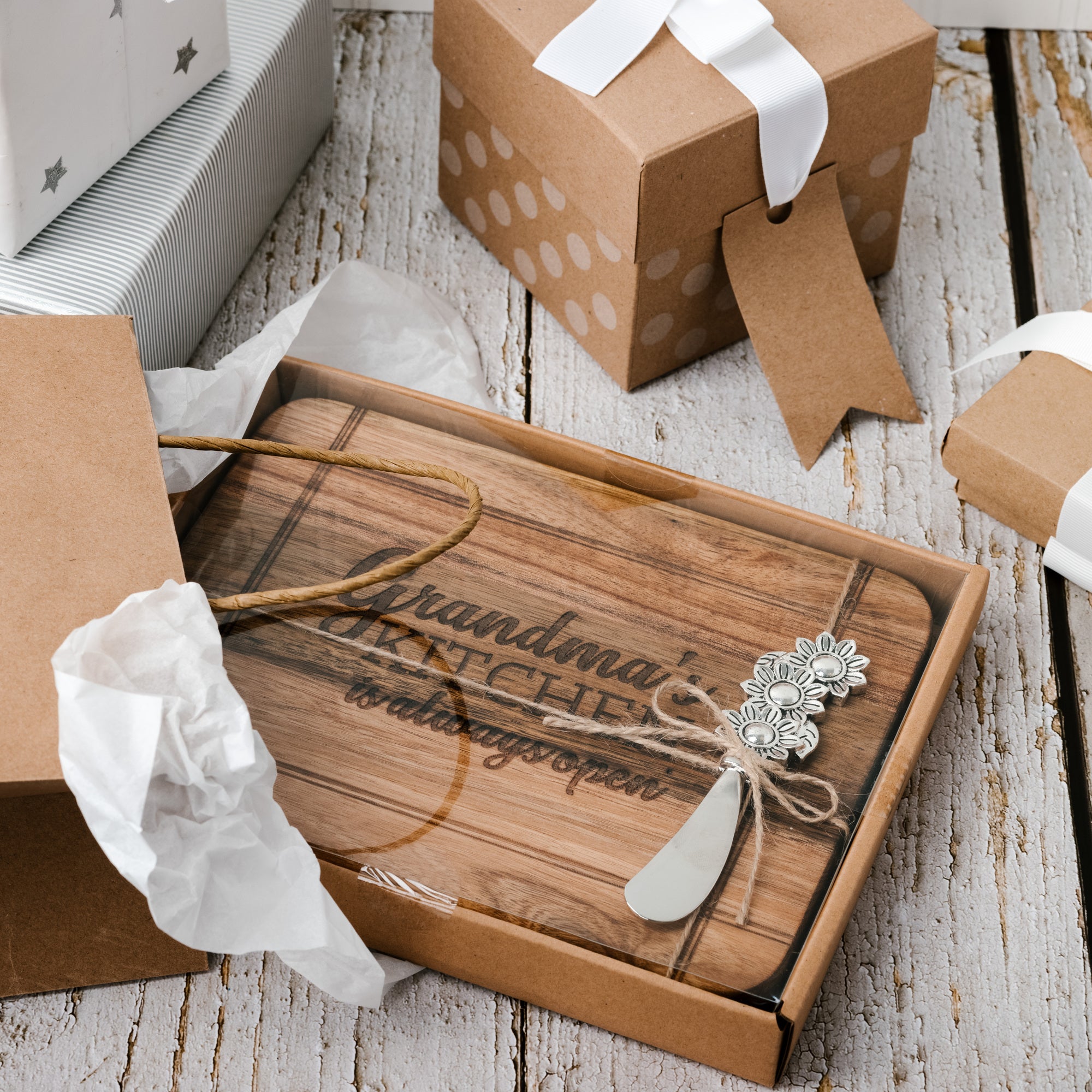 Grandma 9" x 7" Acacia Serving Board with Spreader