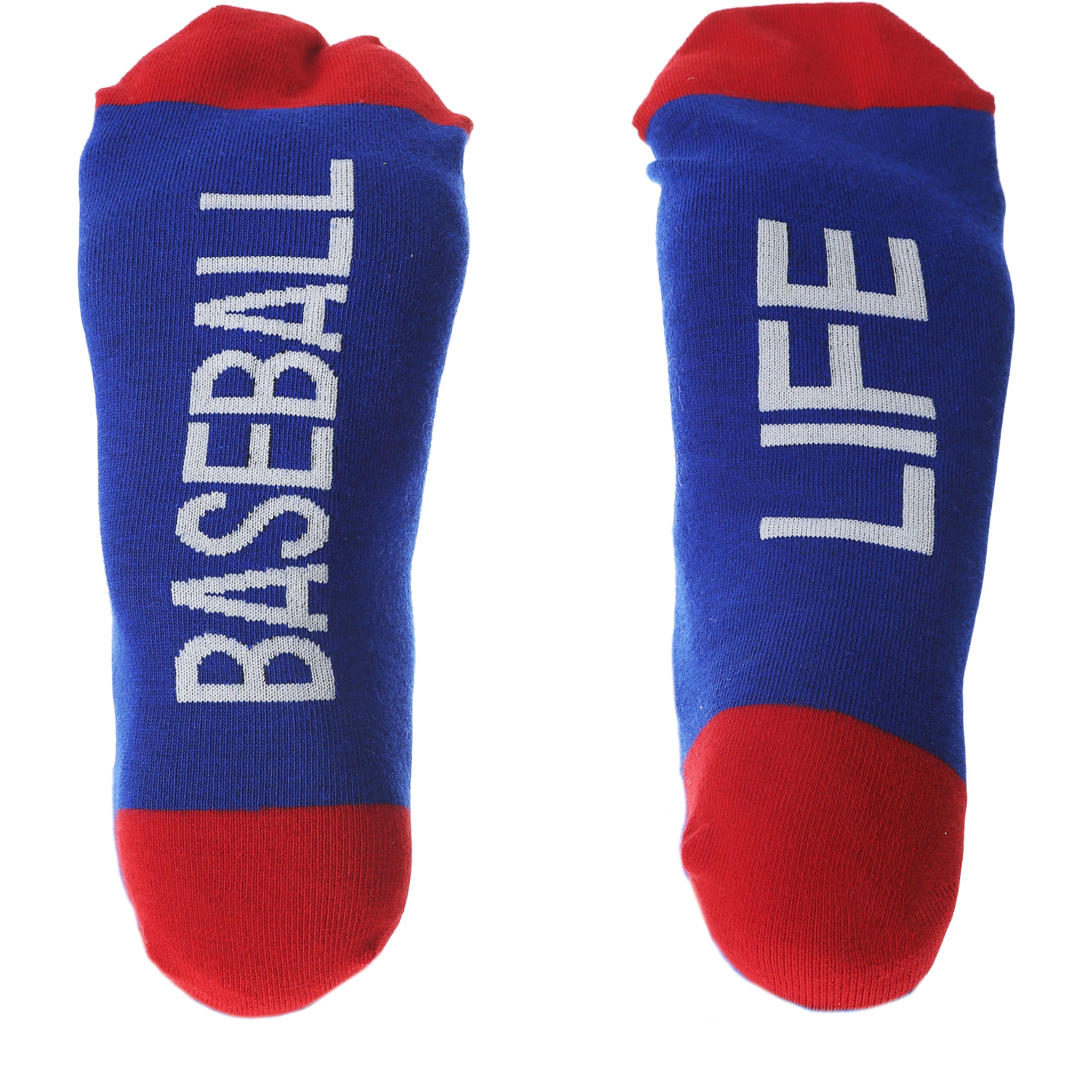 - IN-HOUSE DESIGN: "Baseball Life" text is sewn into the base of the socks while a baseball, baseball bat, glove, and helmet pattern covers the rest.