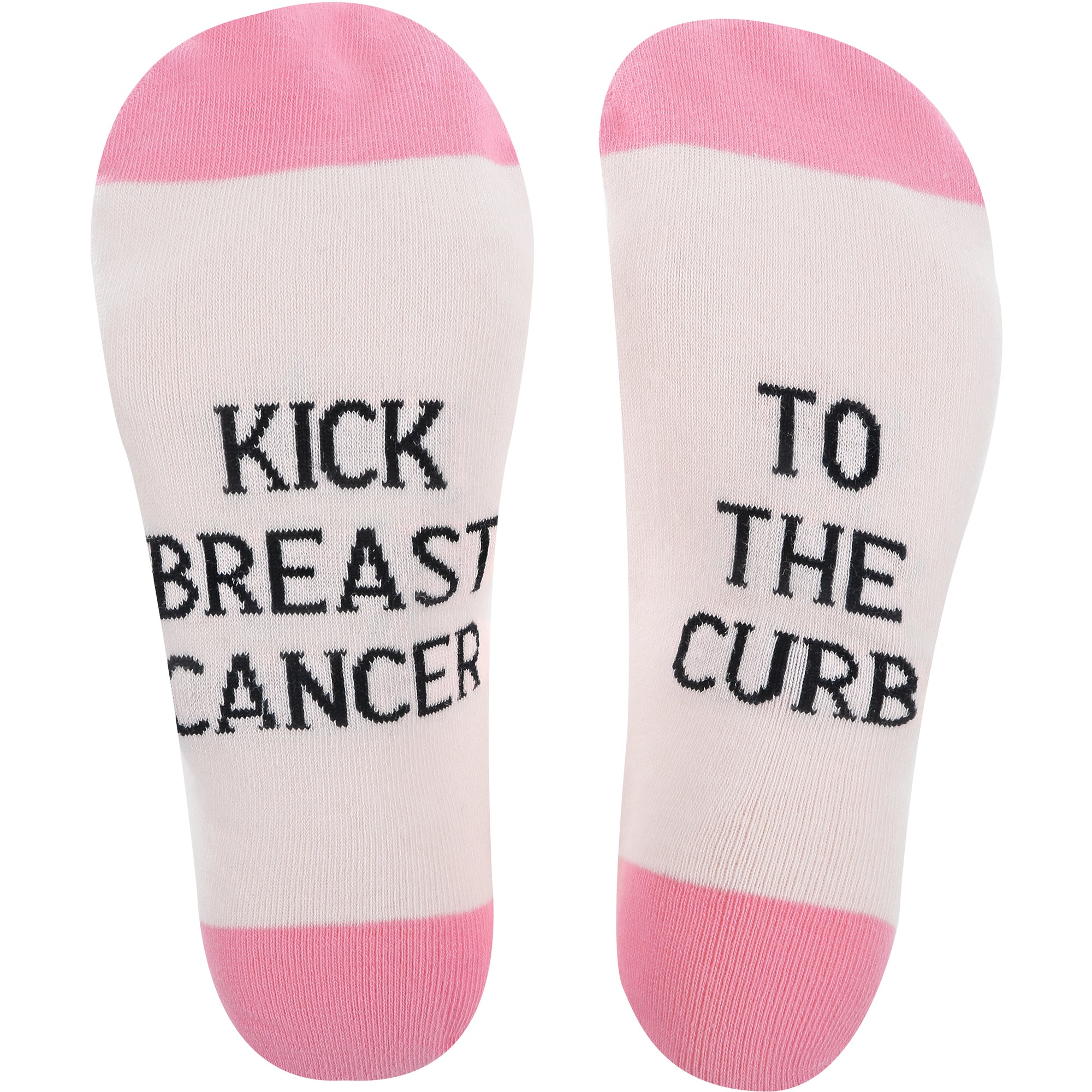 • IN-HOUSE DESIGN: "Kick Breast Cancer To The Curb" text is sewn into the base of the socks.