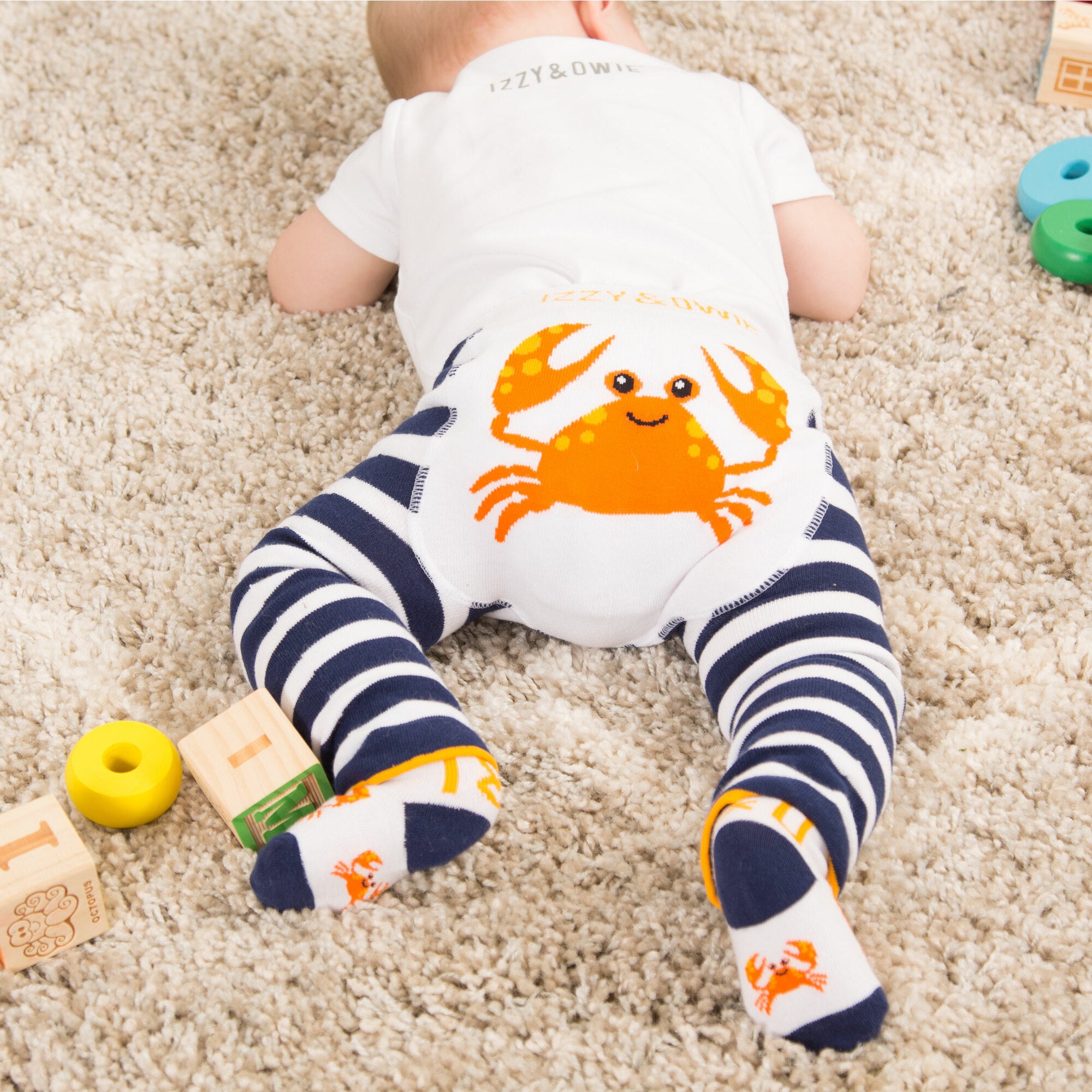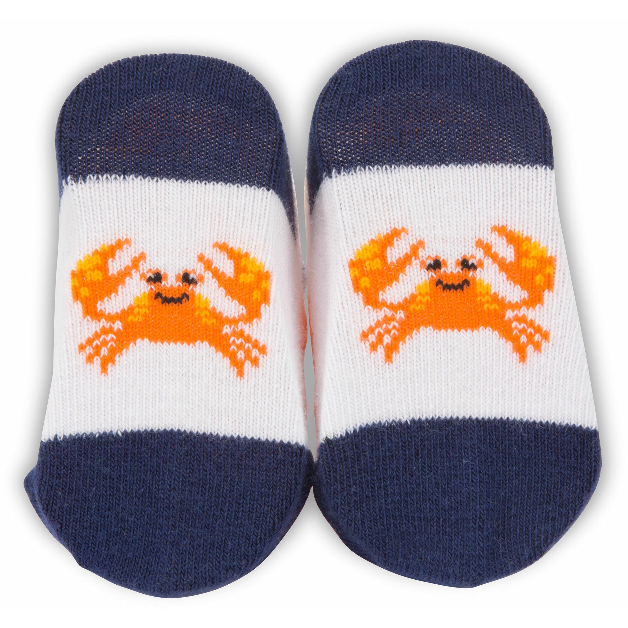 - IN-HOUSE DESIGN: "I & O" text is sewn into the back of each sock, while the front features sewn-in crab images.