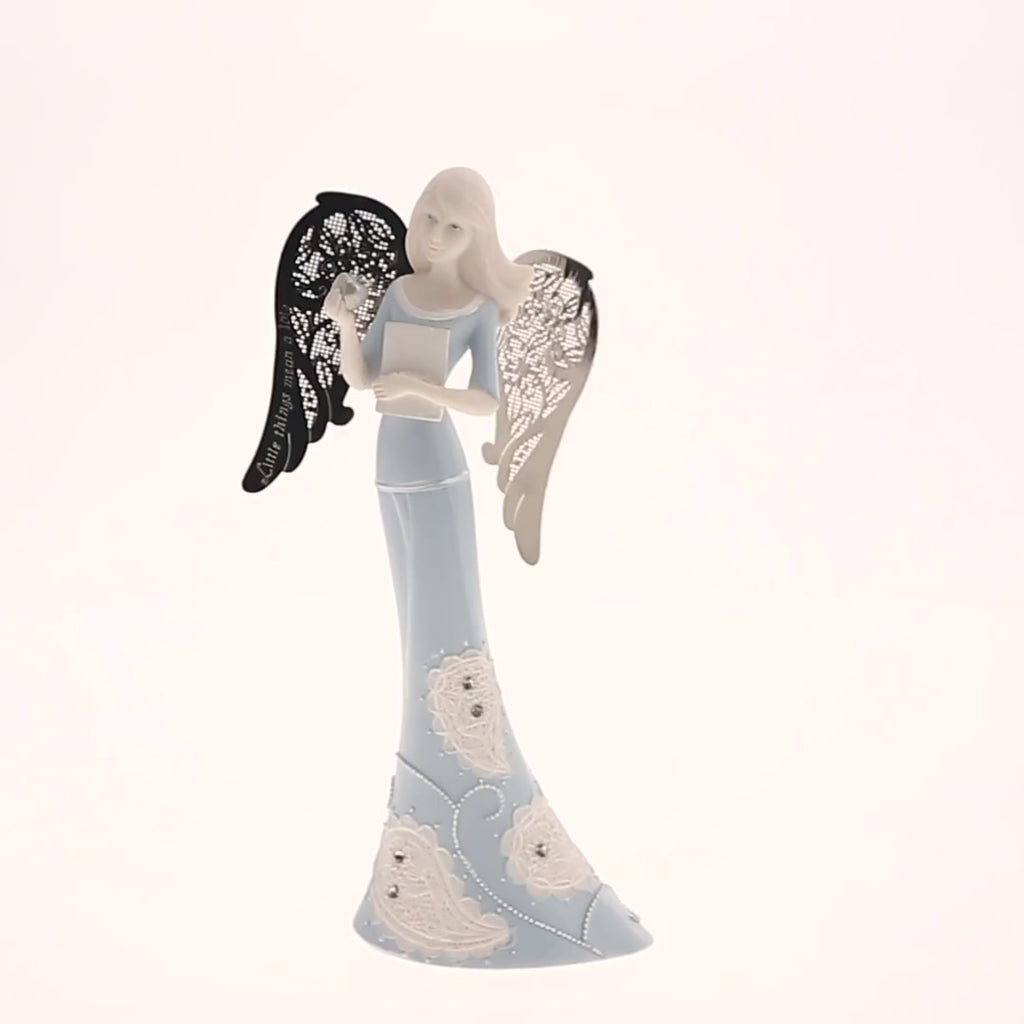 • PREMIUM QUALITY: 6" angel figurine, packaged in a printed box, is made from polyresin and features finely meshed silver-plated wings.