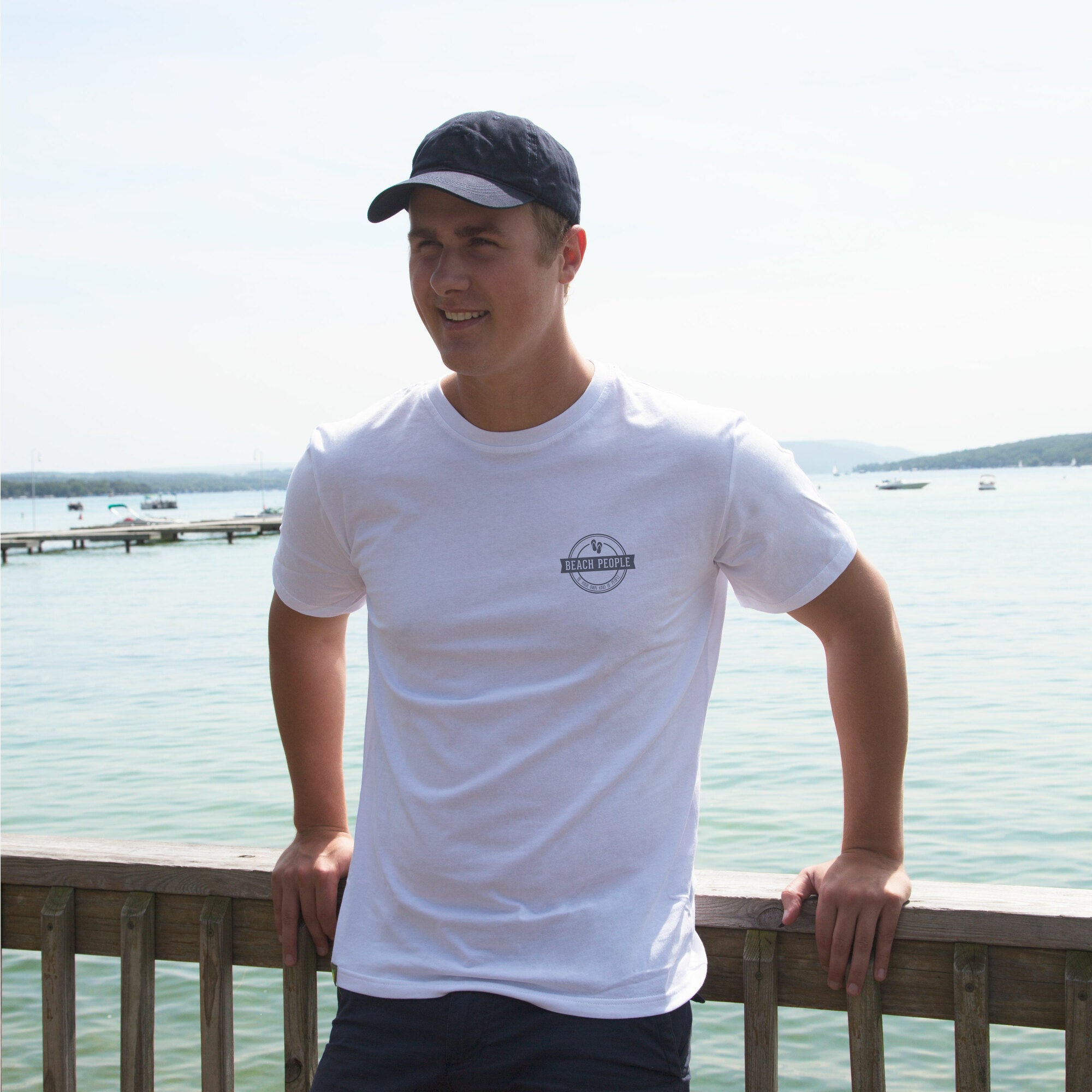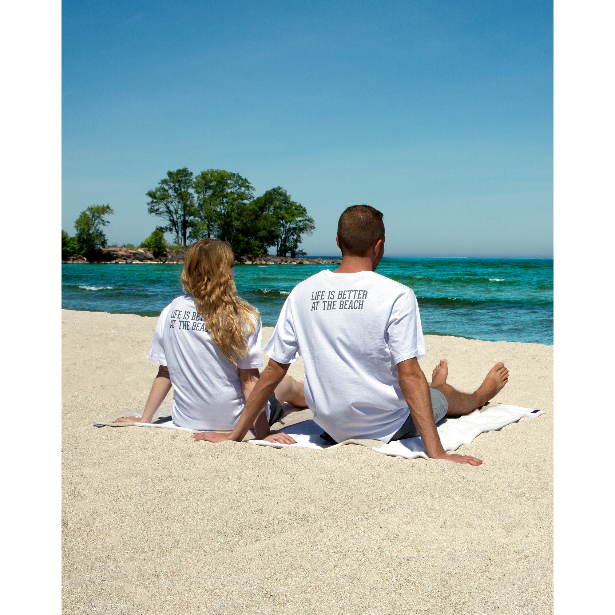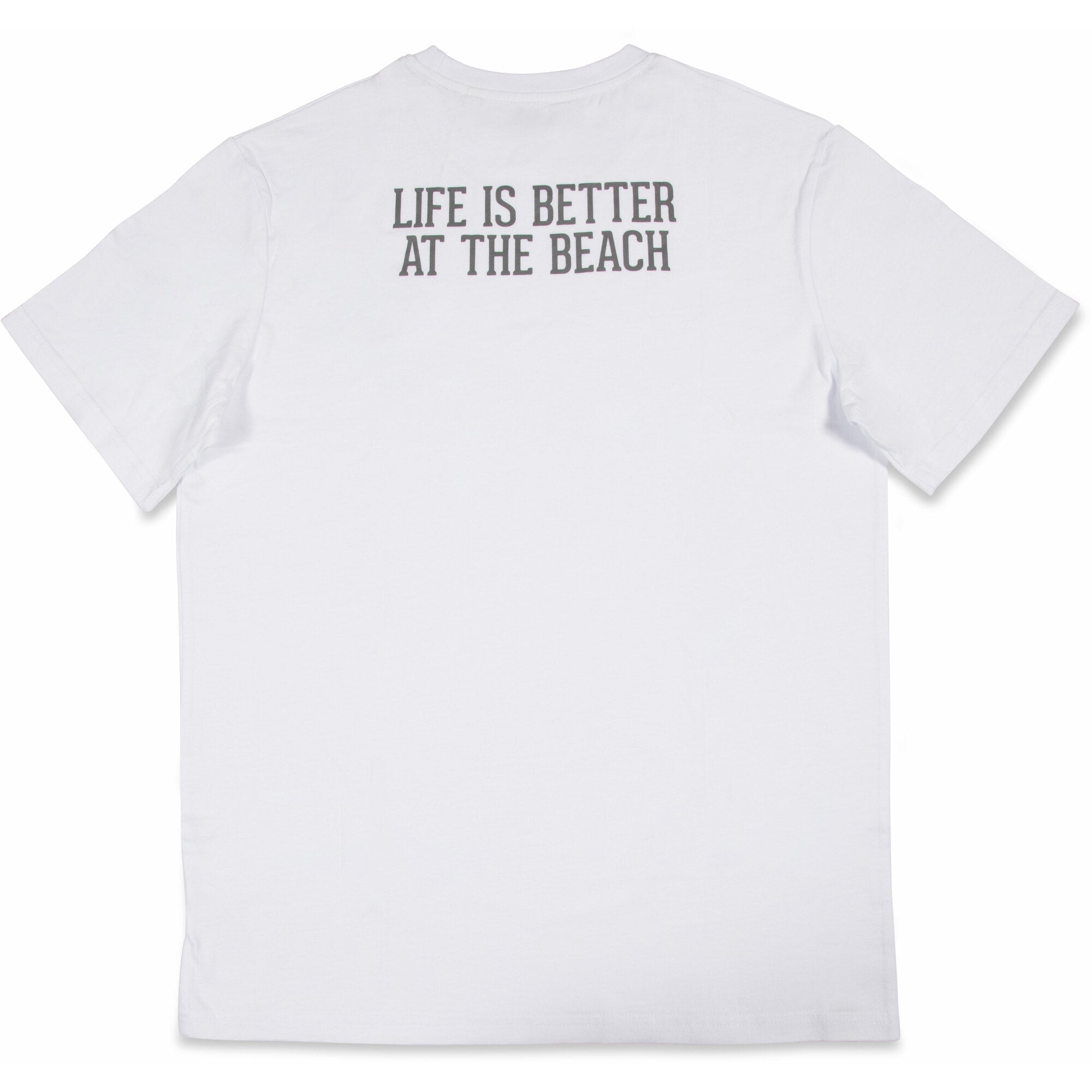 - IN-HOUSE DESIGN: "Beach People" logo is printed on the front of the shirt, as is the "Life is Better At The Beach" text on the back.