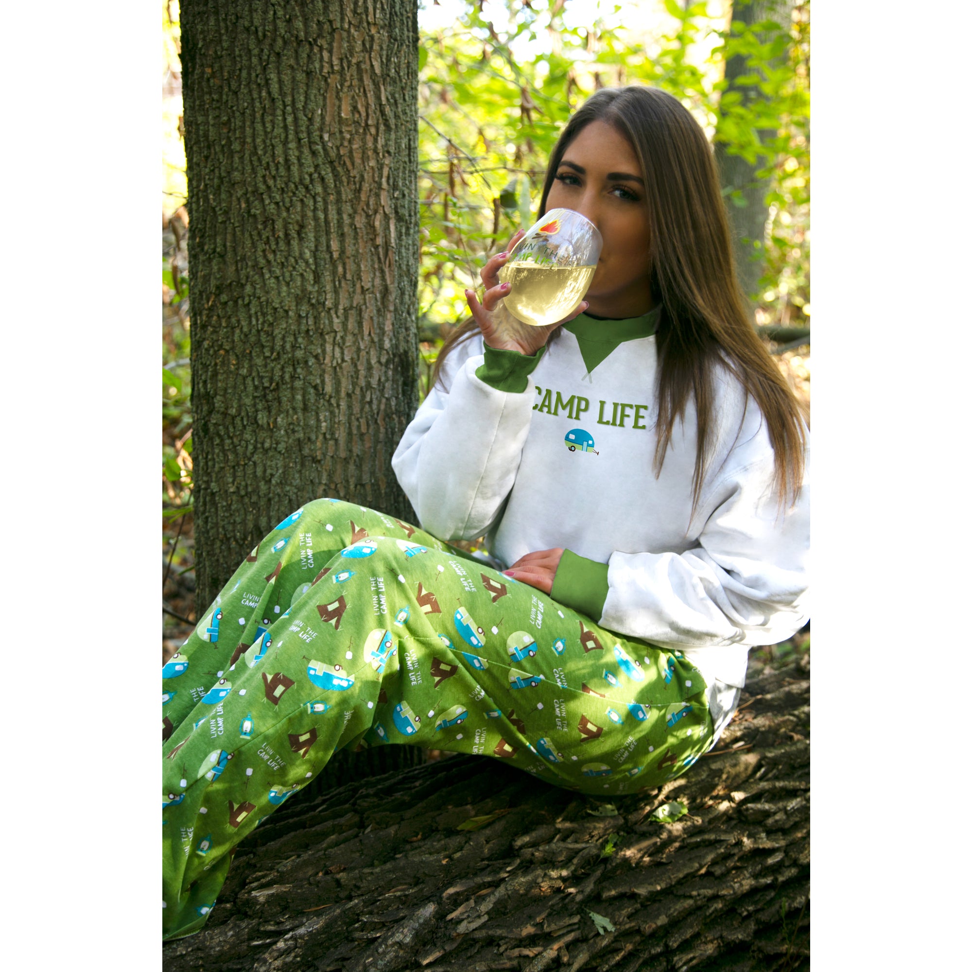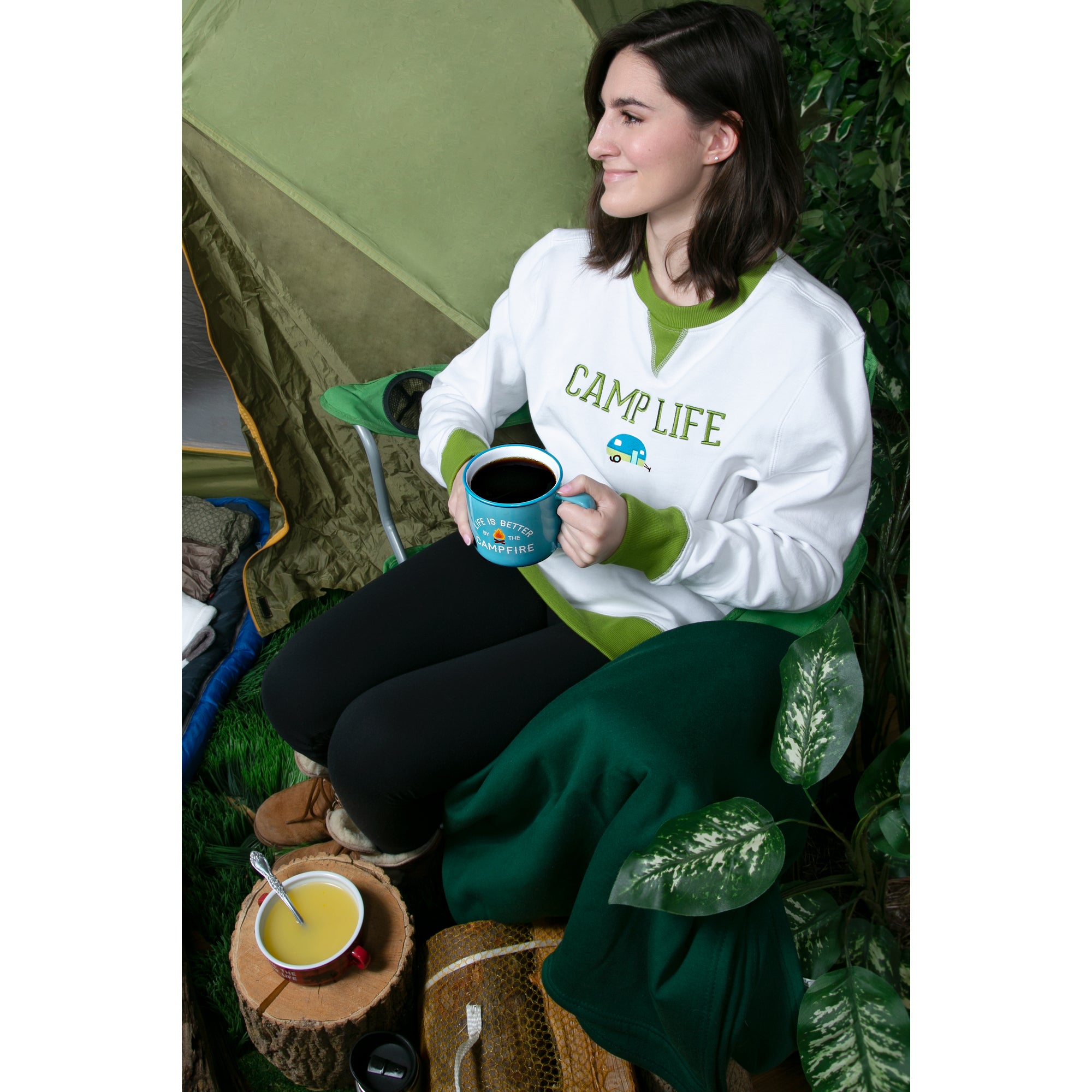 - IN-HOUSE DESIGN: "Camp Life" text is embroidered on the front, whereas the camper icon and "Livin' the Life" text on the back is screen-printed.