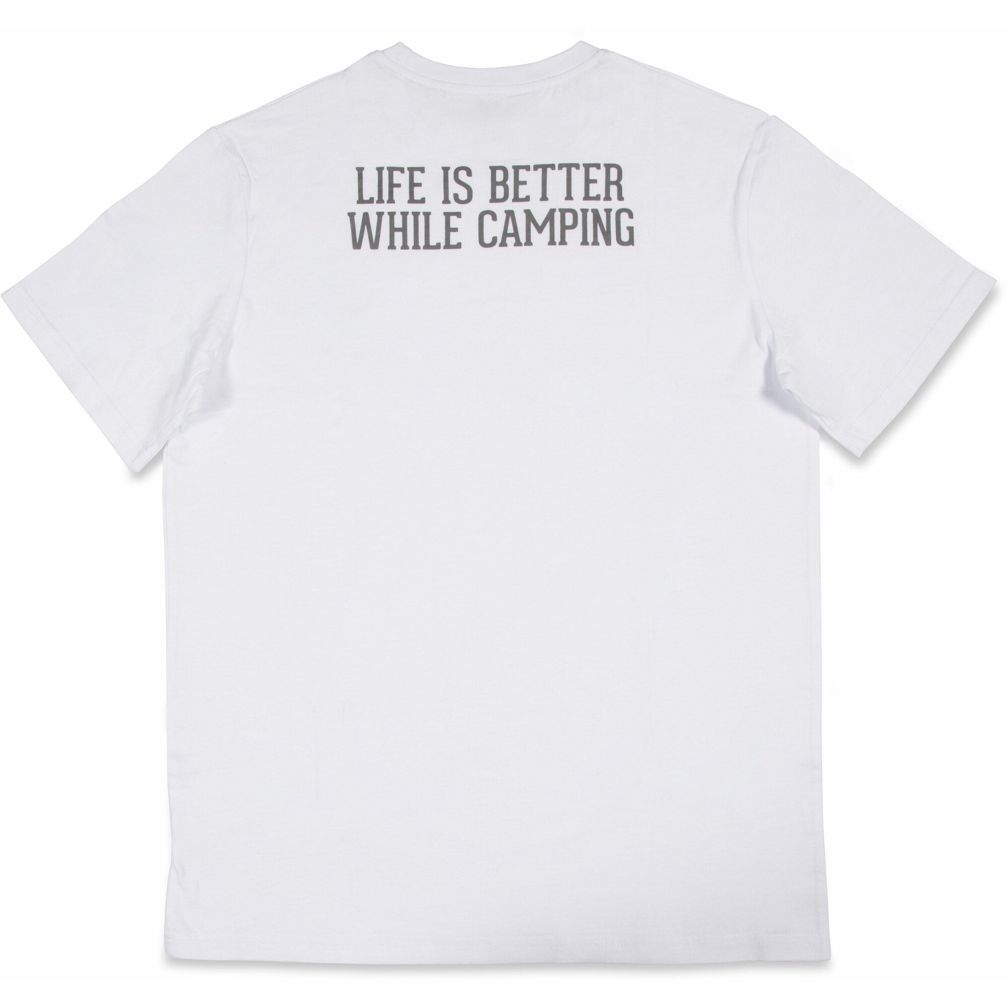 - IN-HOUSE DESIGN: "Camping People" logo is printed on the front of the shirt, as is the "Life is Better While Camping" text on the back.