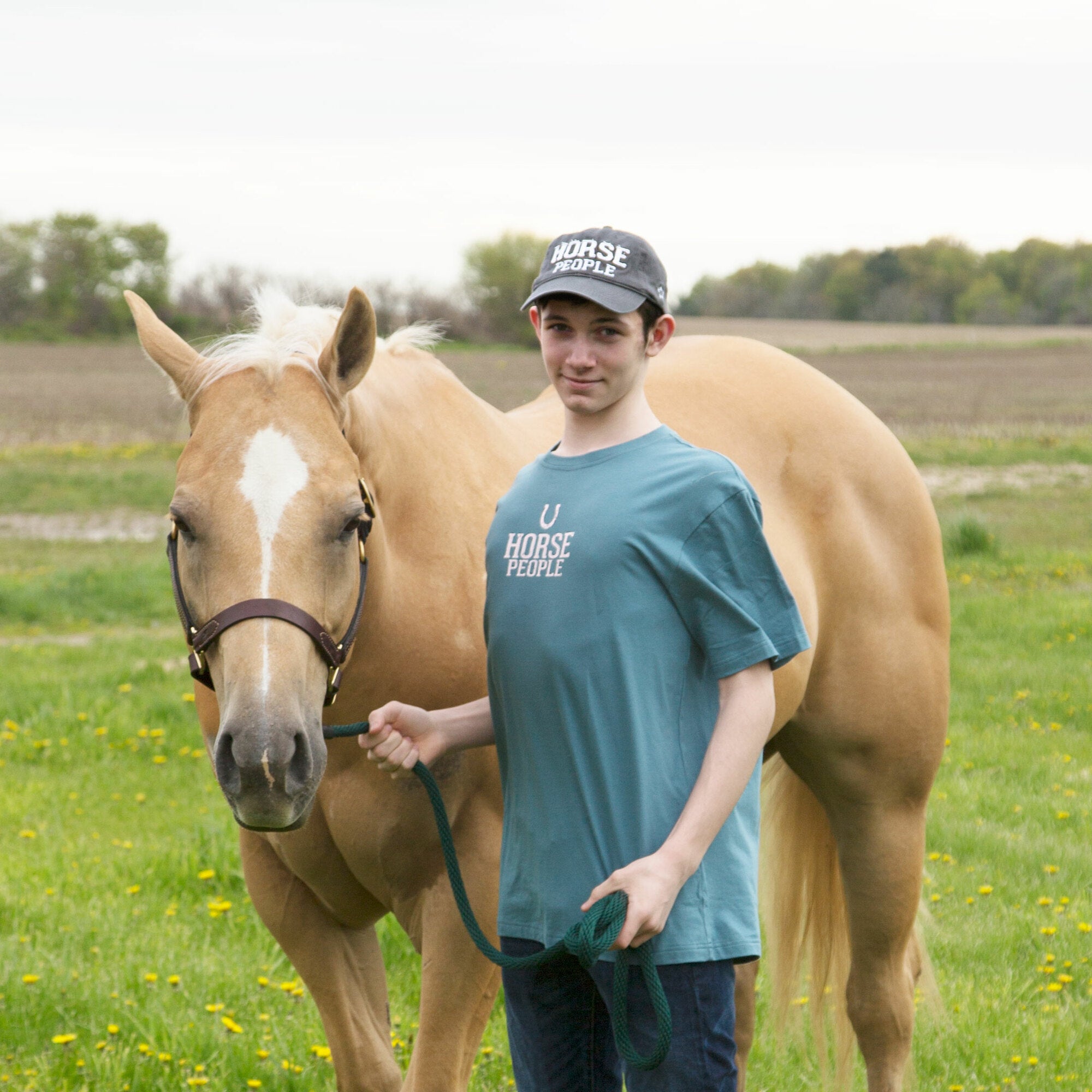 - IN-HOUSE DESIGN: "Horse People" text and logo are printed on the front of the shirt.