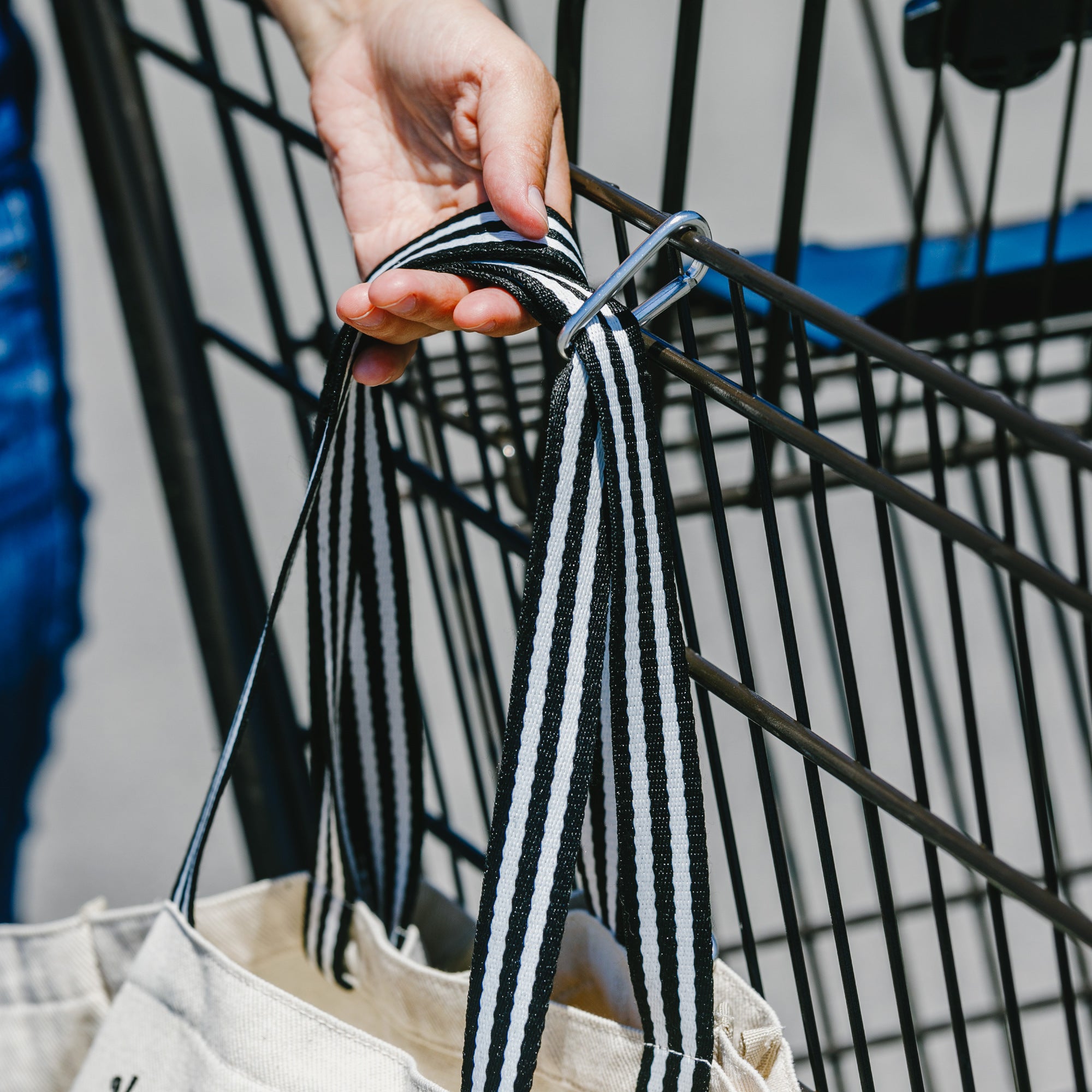 - PREMIUM QUALITY: Large 12 x 13 x 8 inch striped double handled canvas grocery bag is made from 100% cotton canvas.