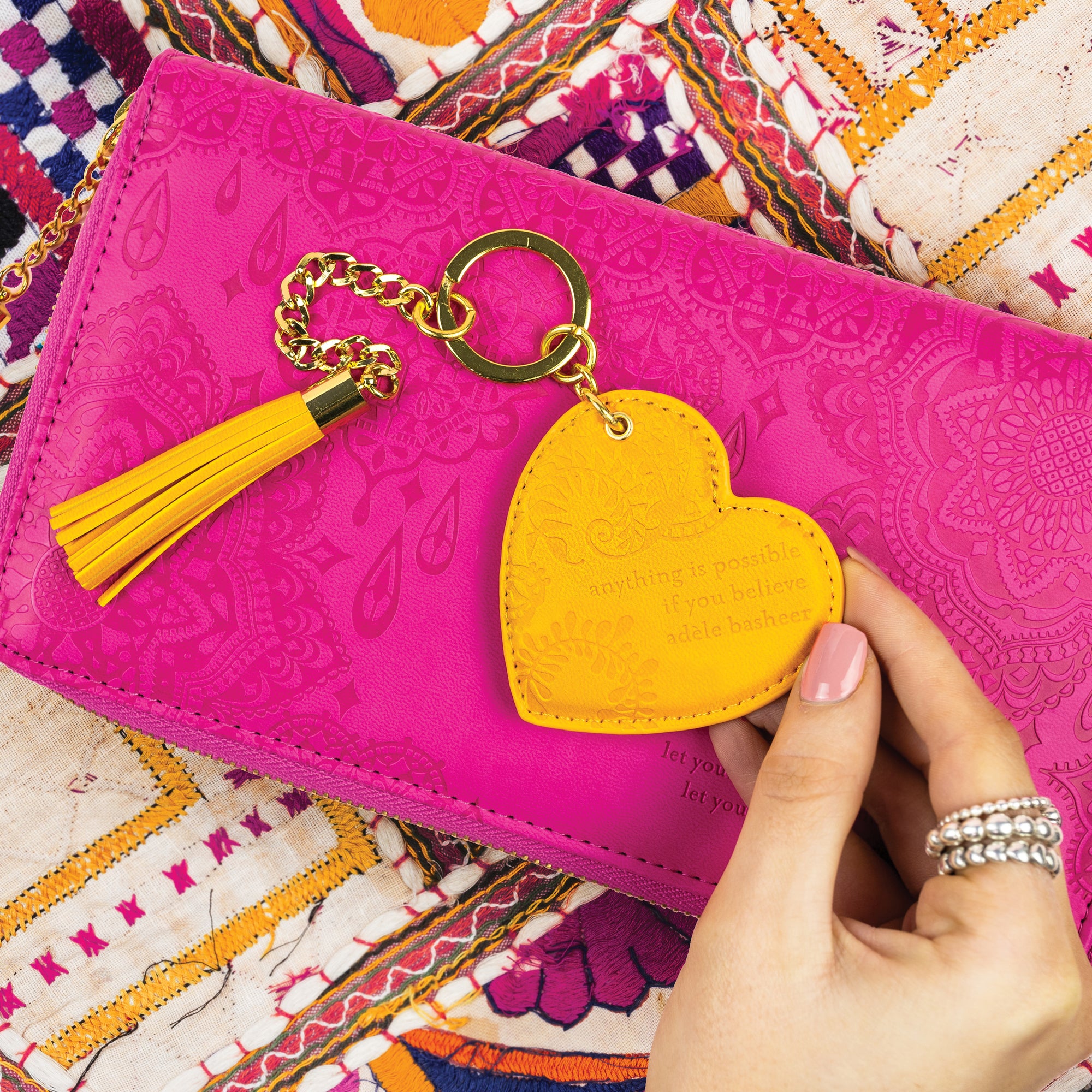 - PREMIUM QUALITY: 3" heart-shaped keychain with matching tassel, packaged in a plastic polybag, is made from vegan leather with metal accents.