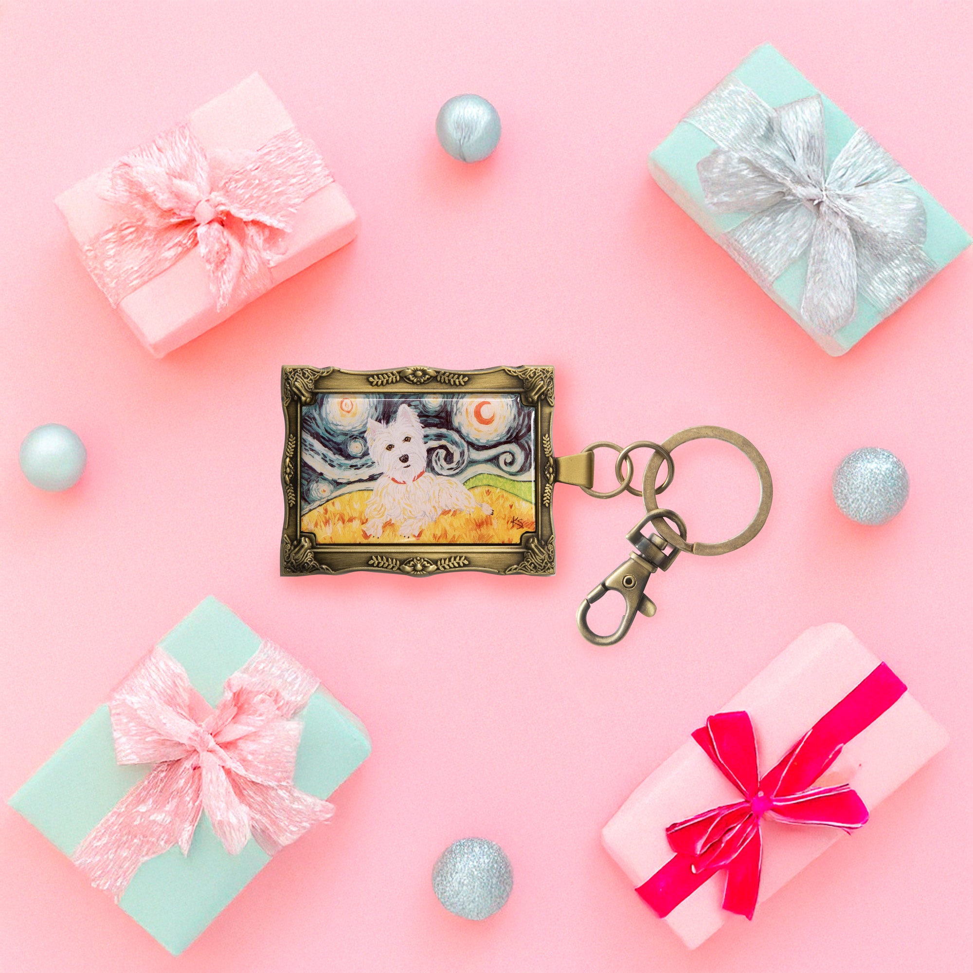 - IN-HOUSE DESIGN: "I Love My Van Growl Westie" text is engraved into the back of the keychain, while the front features an artist impression of a West Highland Terrier.