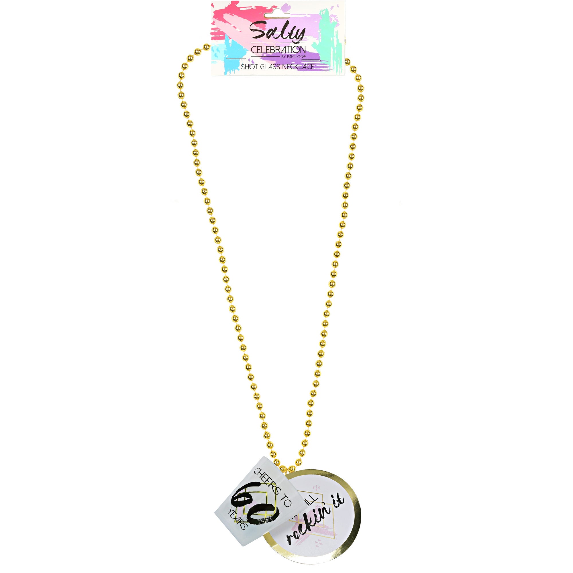 - PREMIUM QUALITY: 15.5" necklace with attached 1.75oz glow-in-the-dark shot glass, packaged in a plastic polybag with a cardboard header card, is made from plastic and cardstock.