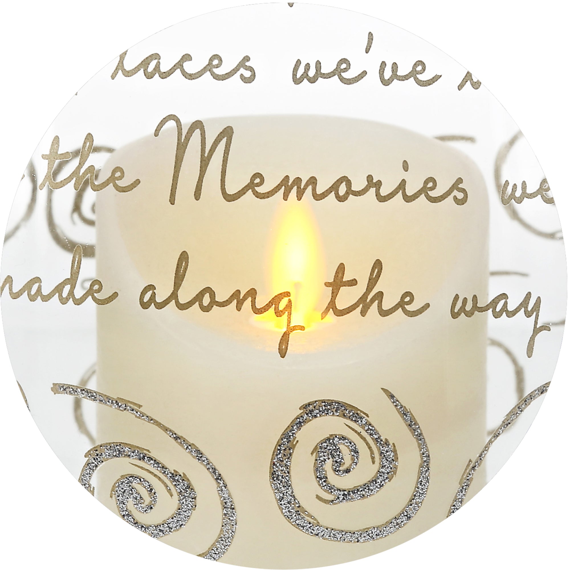 - IN-HOUSE DESIGN: "The Best Things In Life Are The People We Love, The Places We've Been And The Memories We've Made Along The Way" text decal and hand-painted gold swirl detail are both applied to the front of the candle.